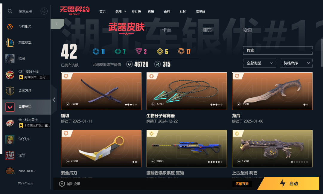 • 游戏区服:无畏契约-wegame / wegame / wegame
