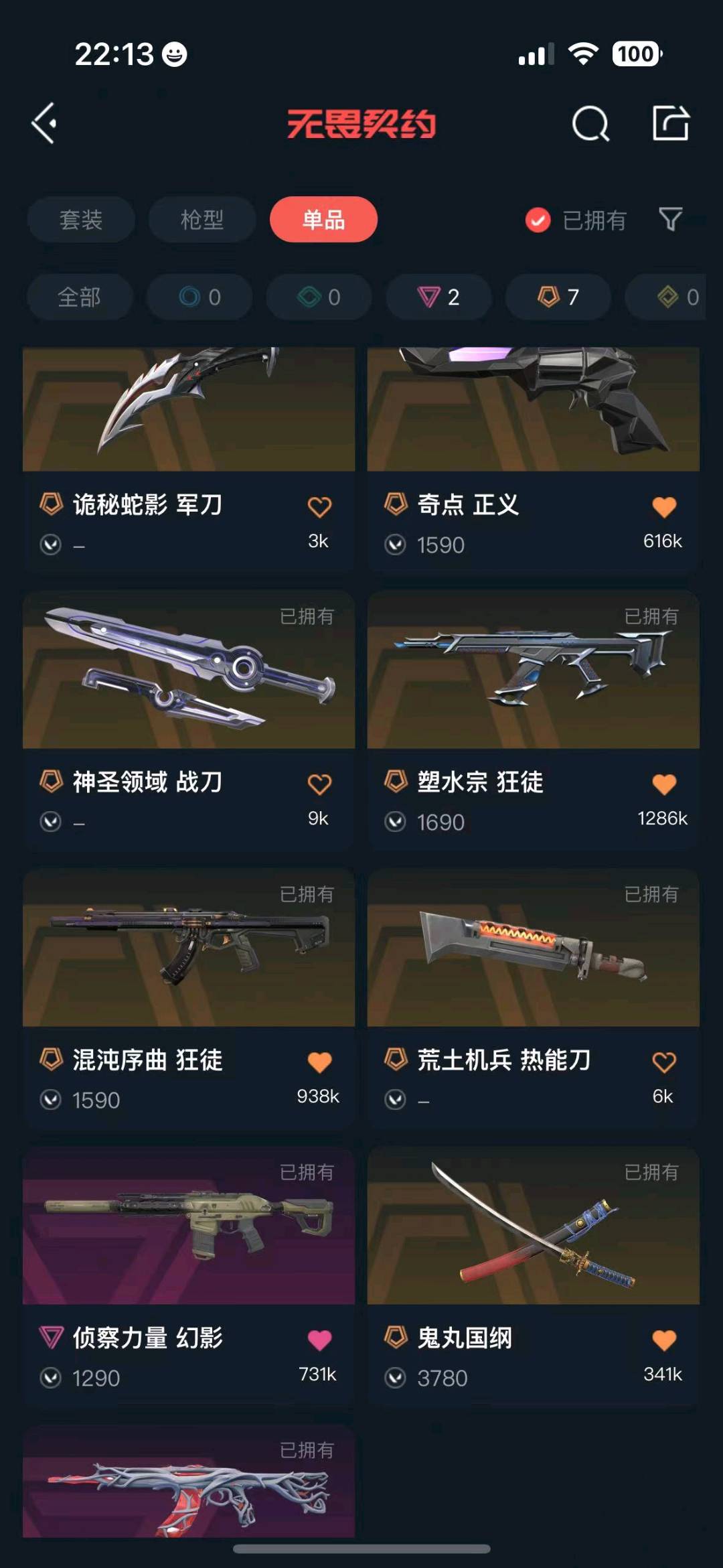匹配25冠军套 2w库存少爷太刀 流脓盖亚混沌溯水四幻神狂徒 侦查幻影 奇点正义精皮号