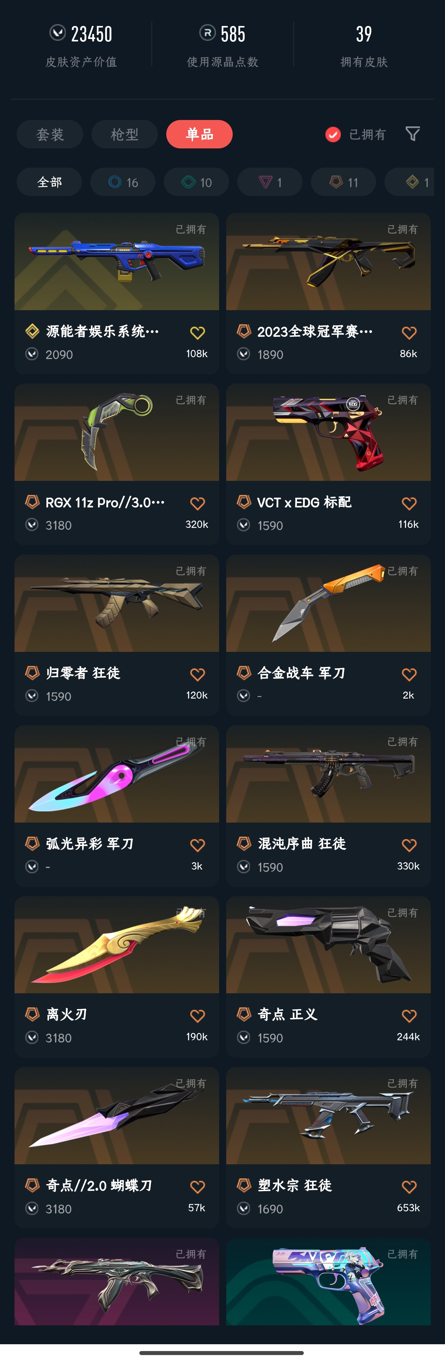 • 皮肤资产价值: 23450