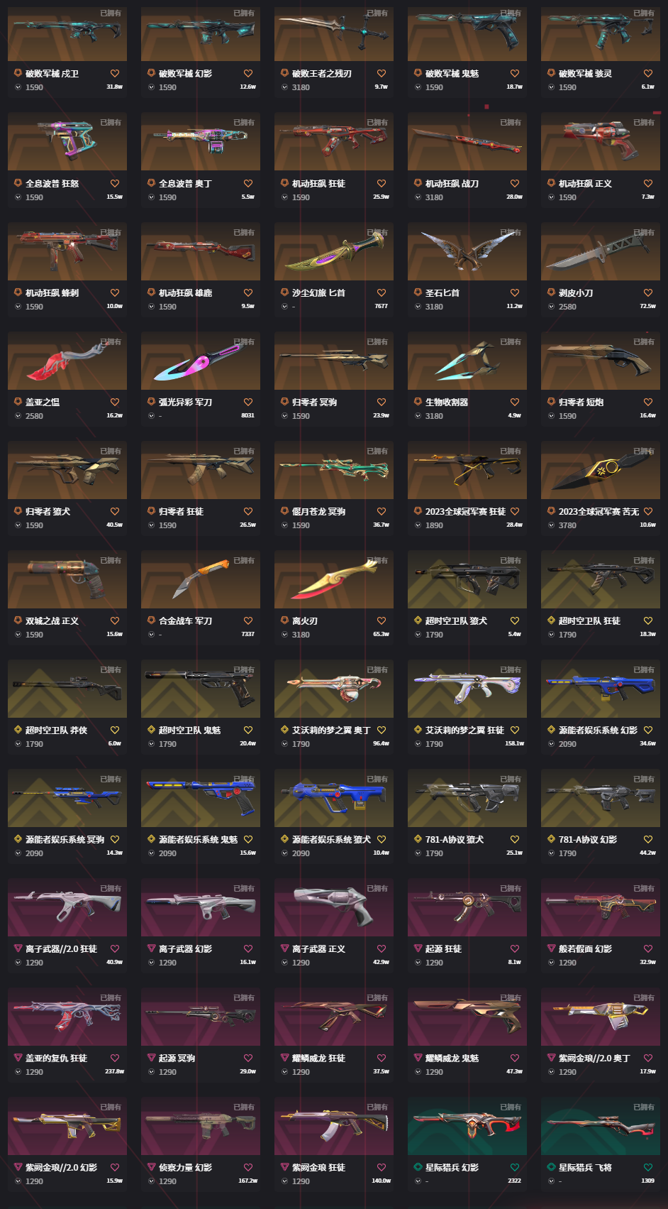 首页 > 租号大厅 > 无畏契约-wegame > wegame/wegame > 秒解冻➩20W库38刀29狂徒⚡颗秒套⚡全冠军限定⚡离火⚡剥皮VCT爪刀光谱套时空套虚空套黯夜套西部