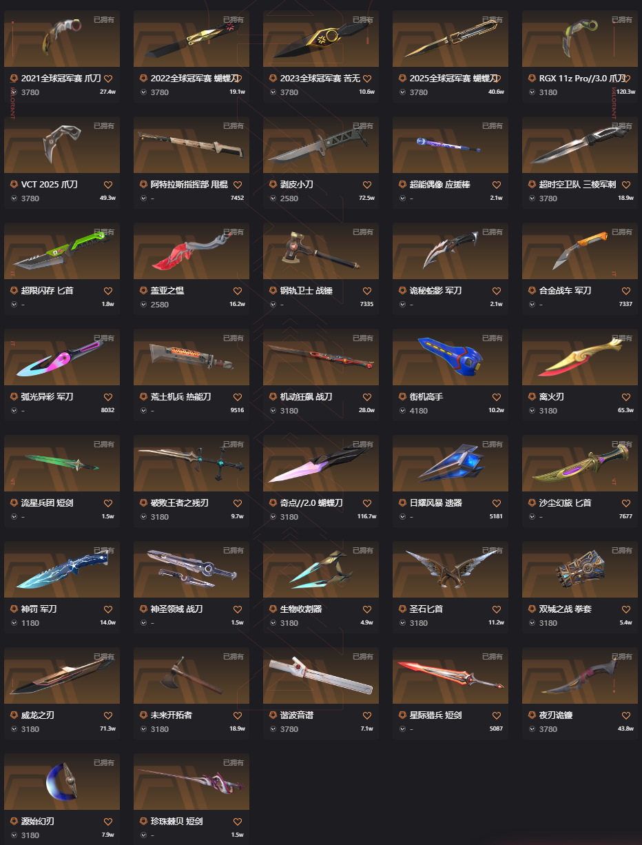秒解冻➩20W库38刀29狂徒⚡颗秒套⚡全冠军限定⚡离火⚡剥皮VCT爪刀光谱套时空套虚空套黯夜套西部