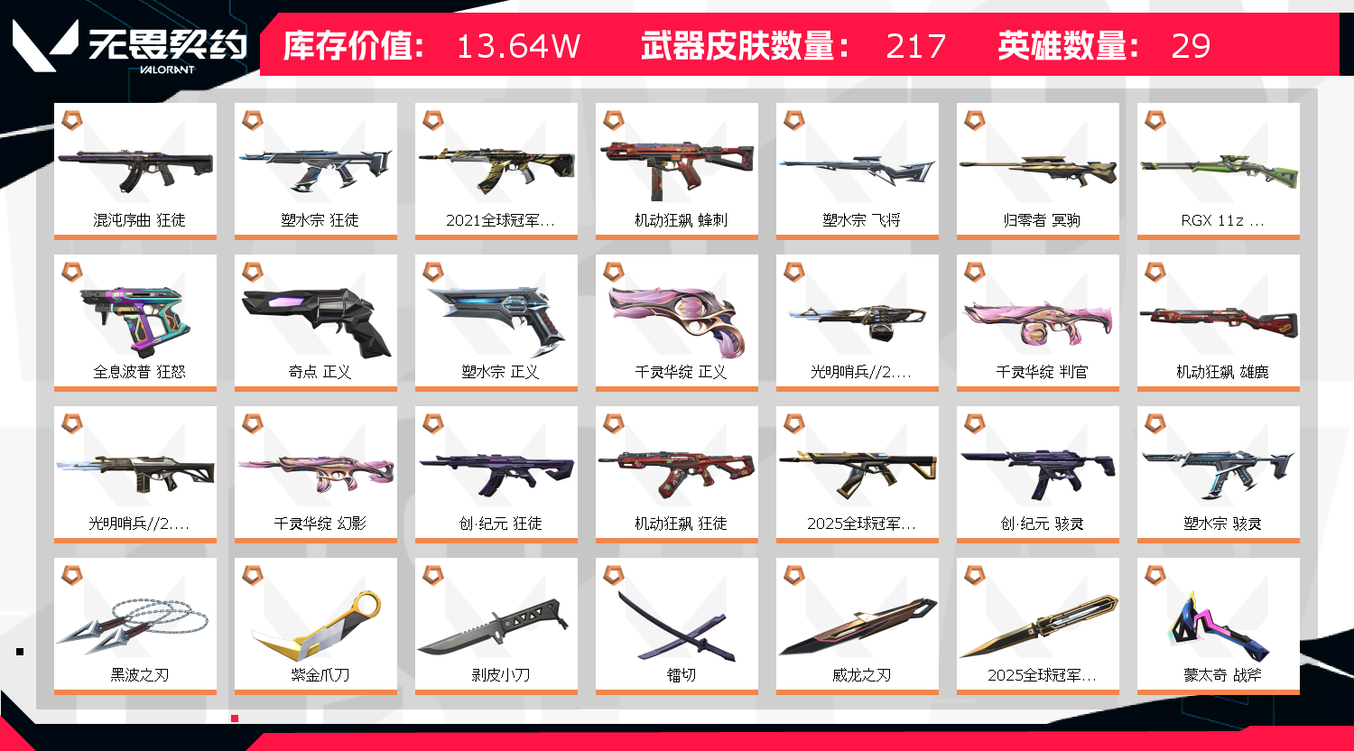 • 皮肤资产价值: 136420