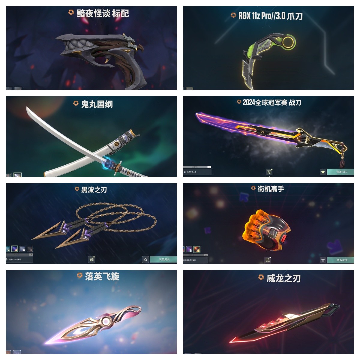 【拥有套装】混沌序曲套装(混沌序曲-狂徒,混沌序曲-冥驹,混沌序曲-蜂刺,混沌序曲-短炮,混沌大剑)千灵华绽套装(千灵华绽-幻影,千灵华绽-冥驹,千灵华绽-判官,千灵华绽--正义,落英飞旋)黯夜怪谈套装(黯夜怪谈-幻影,黯夜怪谈-獠犬,黯夜怪谈-飞将,黯夜怪谈-标配,夜刃诡镰)塑水宗套装(塑水宗-骇灵,塑水宗-狂徒,塑水宗-飞将,塑水宗-正义,黑波之刃)2024全球冠军赛套装(2024全球冠军赛-幻影,2024全球冠军赛-战刀)RGX-11z-Pro//3.0套装(RGX-11z-Pro//3.0-莽侠,RGX-11z-Pro//3.0-正义,RGX-11z-Pro//3.0-爪刀)耀鳞威龙套装(耀鳞威龙-狂徒,耀鳞威龙-鬼魅,威龙之刃)