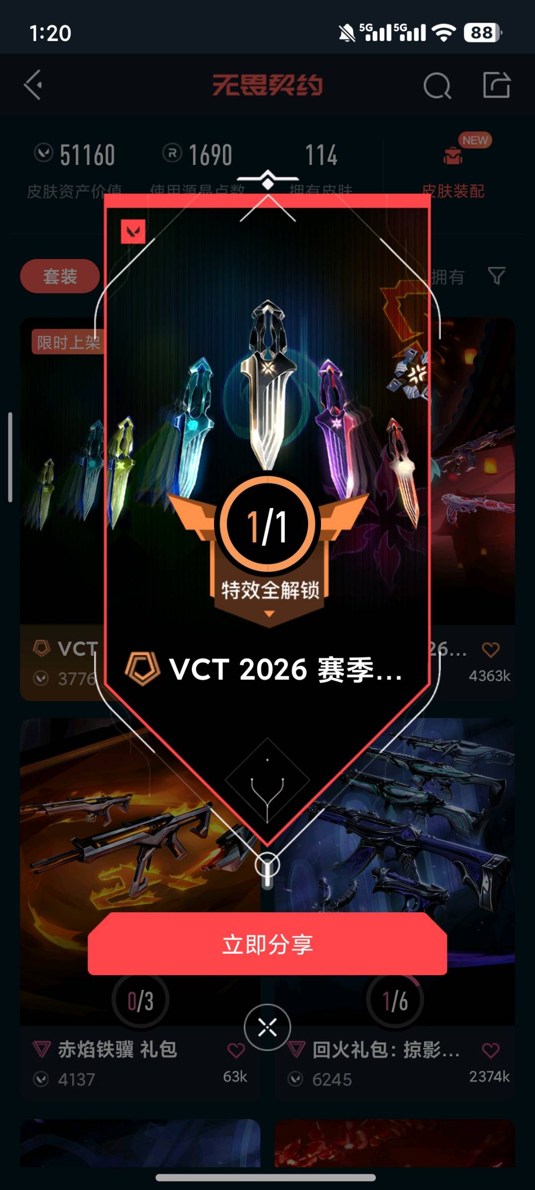 • 皮肤资产价值: 51160