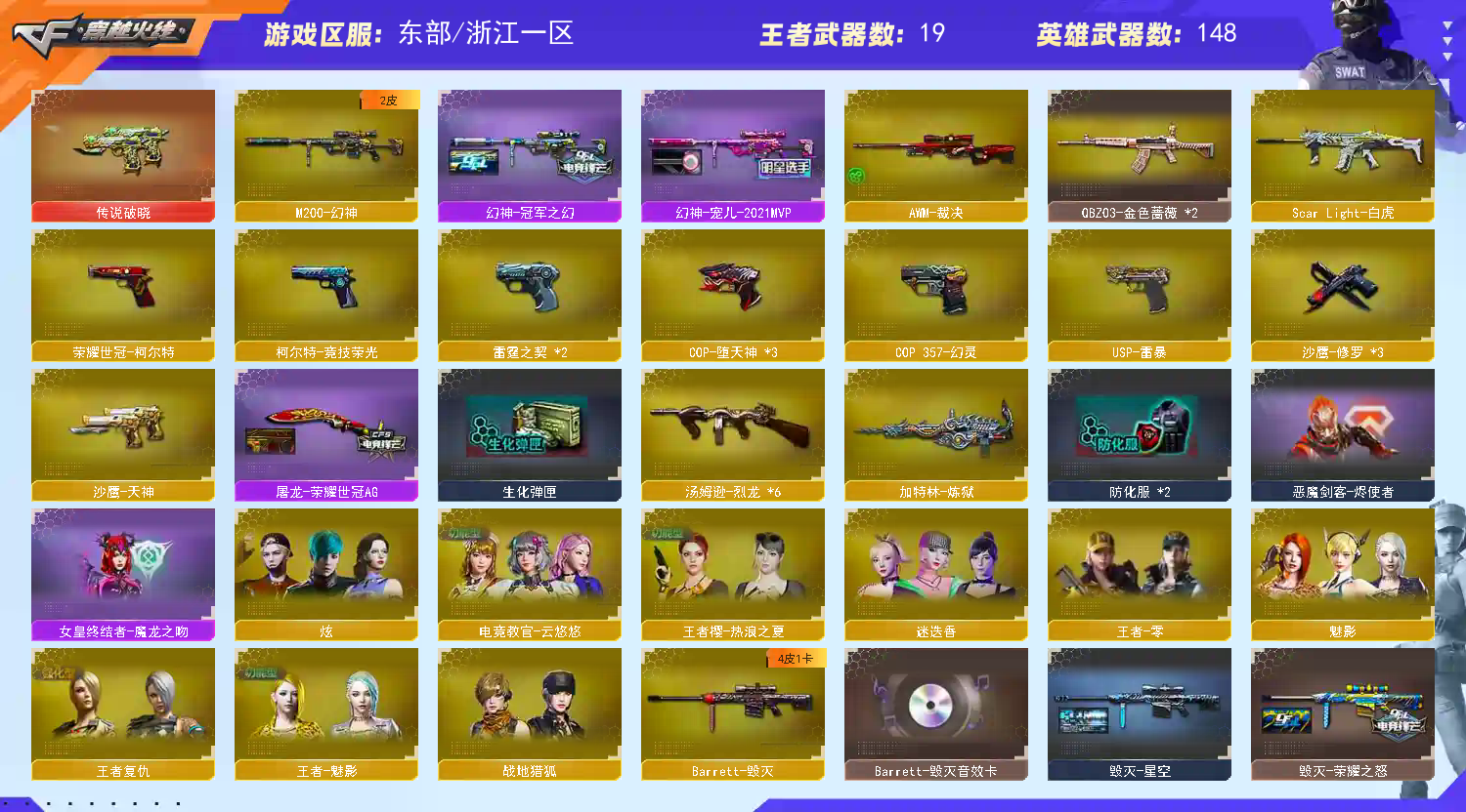 首页 > 租号大厅 > 穿越火线 > 电信区/浙江一区 > 148V🔥幻神宠儿冠军+传破晓白虎/雷暴USP/全竞技荣光/朱雀/幻灵全套全荣耀世冠生化6烈龙