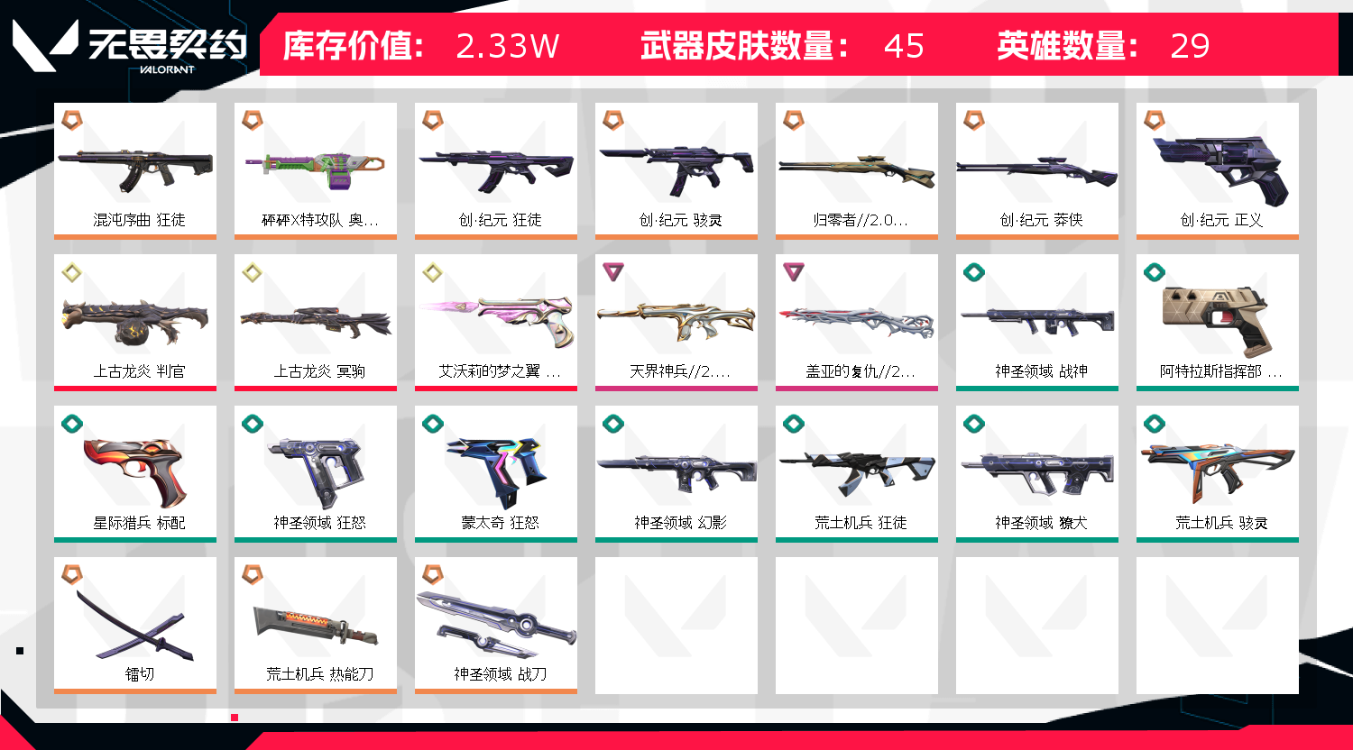 首页 > 租号大厅 > 无畏契约-wegame > wegame/wegame > 冻结秒解✨创纪元套全特效✨混沌序曲 狂徒✨天界神兵//2.0 幻影✨上古龙炎冥驹✨神圣领域 战刀