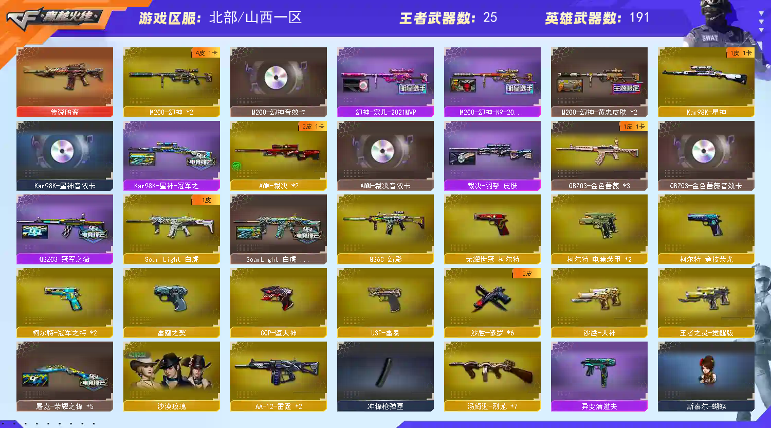 鹰+冠星神卡+裁决皮卡+幻神宠儿卡丨G36幻影丨冠虎薇特刃魄✅蝴蝶刀炼狱泡泡象沙漠玫瑰🈲禁宏封起诉