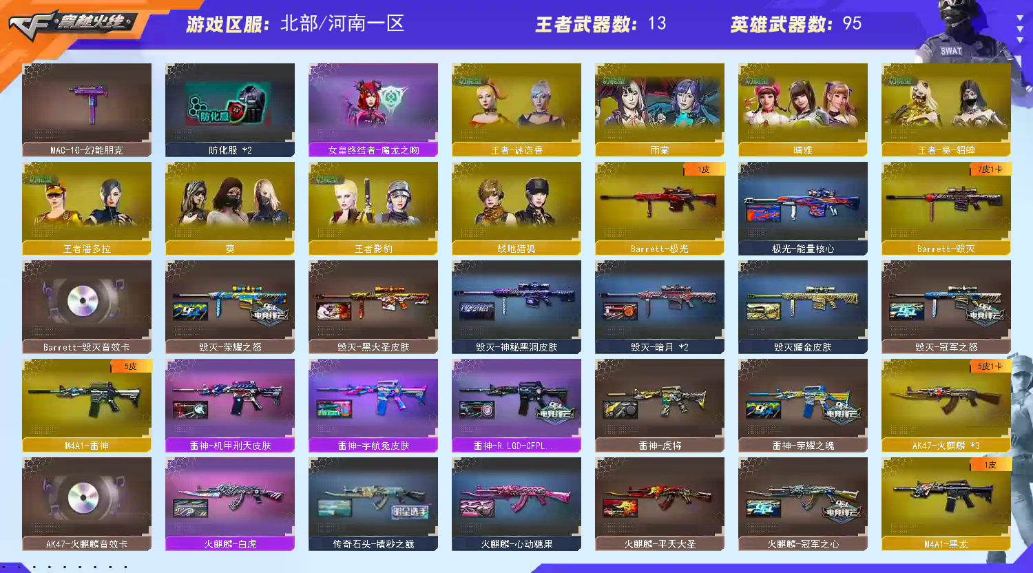 首页 > 租号大厅 > 穿越火线 > 网通区/河南一区 > 120v爆破全装可排位、传说圣灵幻神+冠军皮肤+音效卡、神工天巧套、冠军套、王者潘多拉、晴雅,玄武