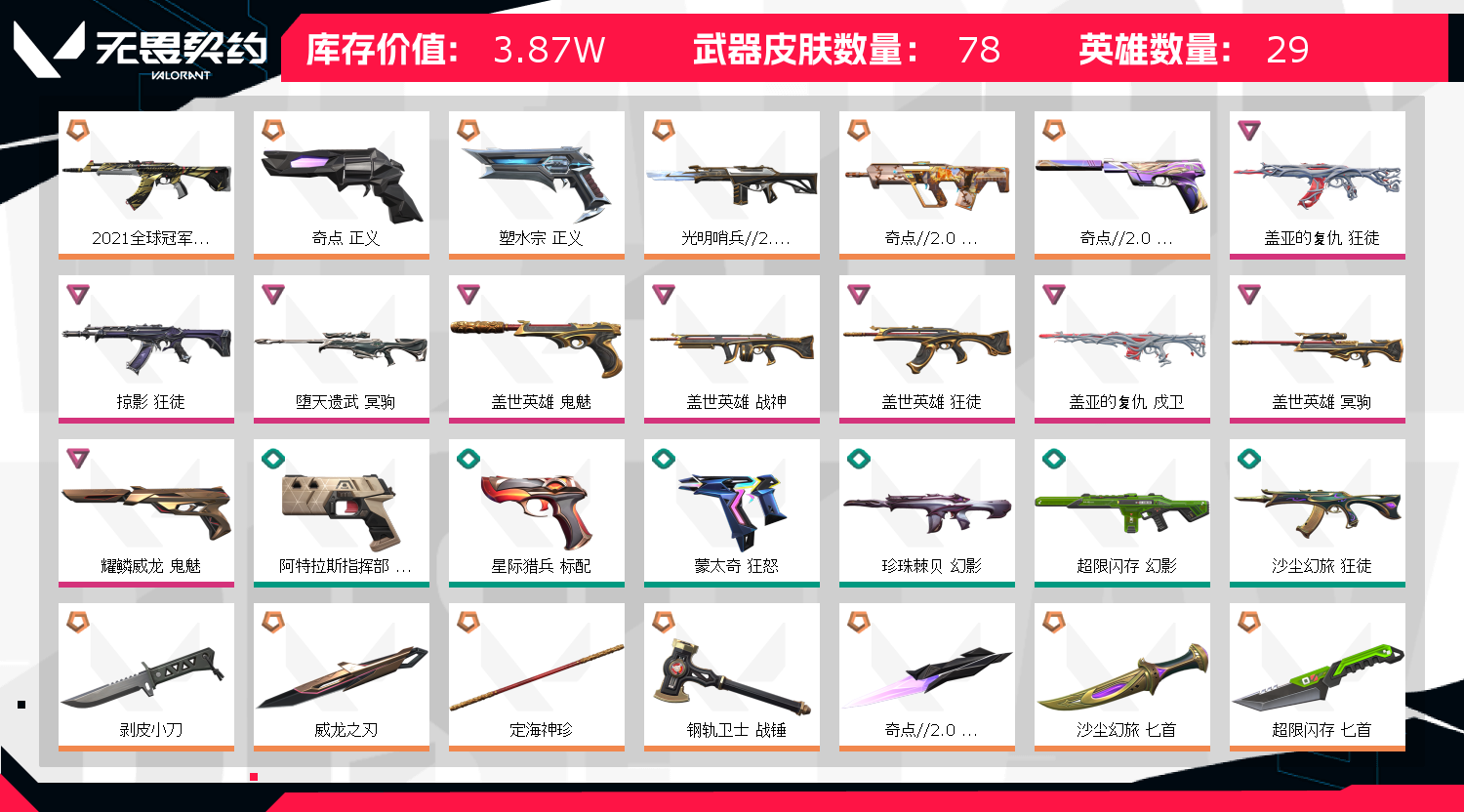 • 武器皮肤数量: 78
