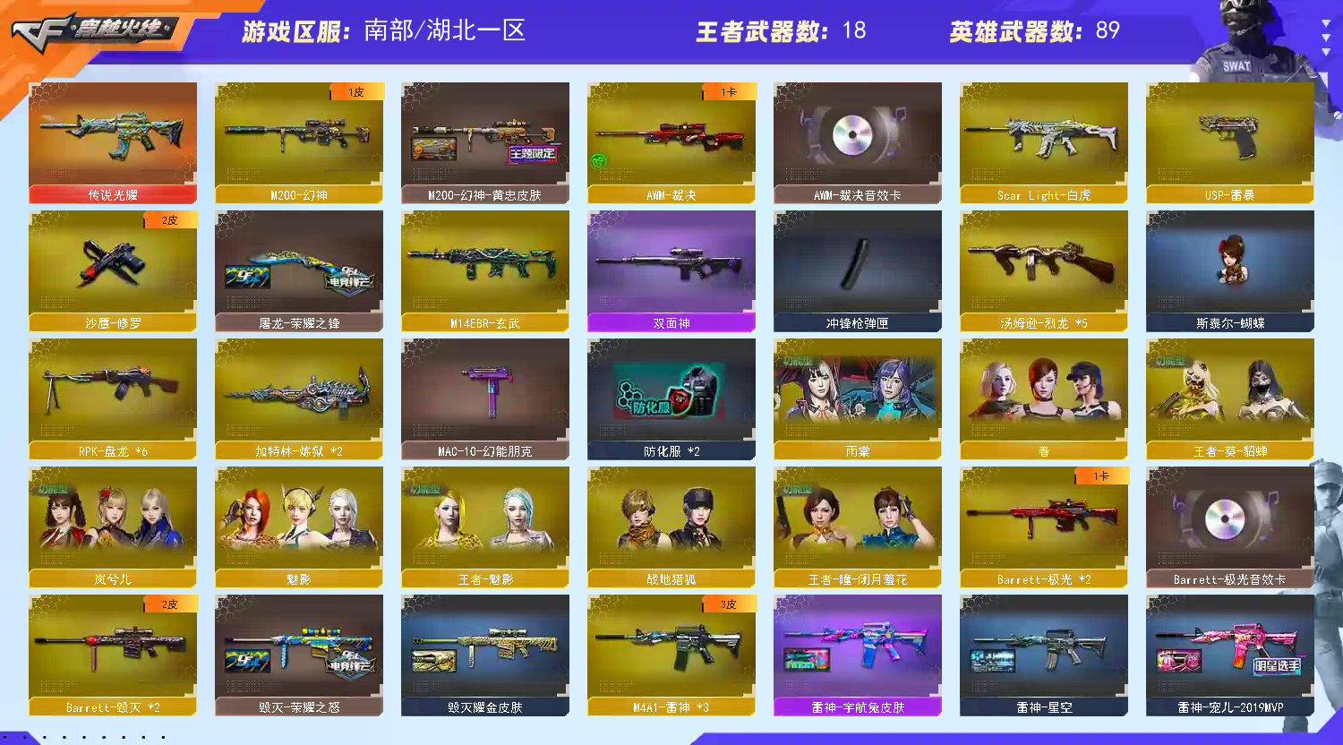 具体武器看图;USP-雷暴,RPK-盘龙,M200-幻神,Scar Light-白虎,