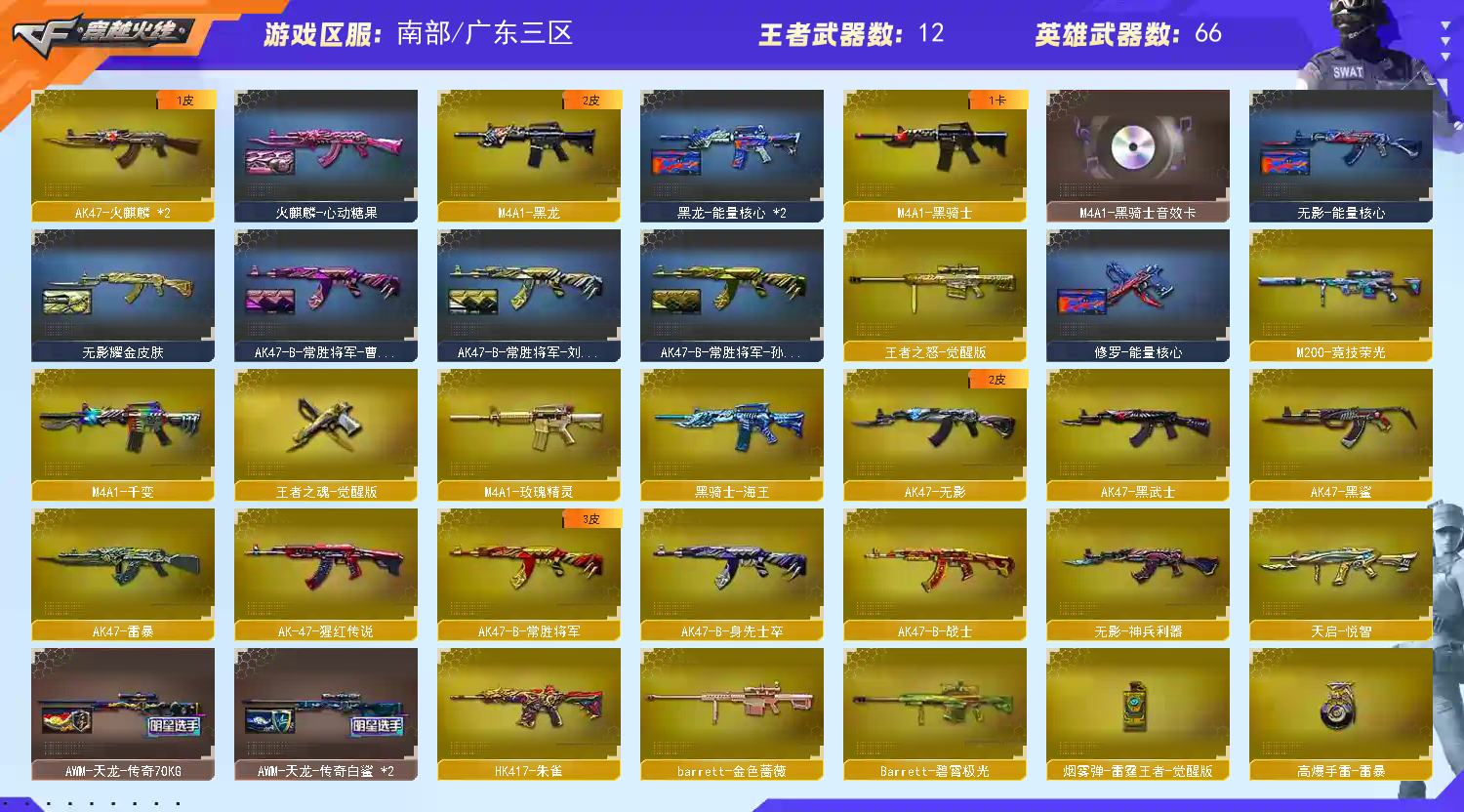• 游戏区服:穿越火线 / 南部 / 广东三区