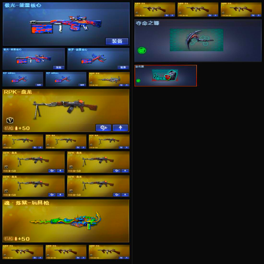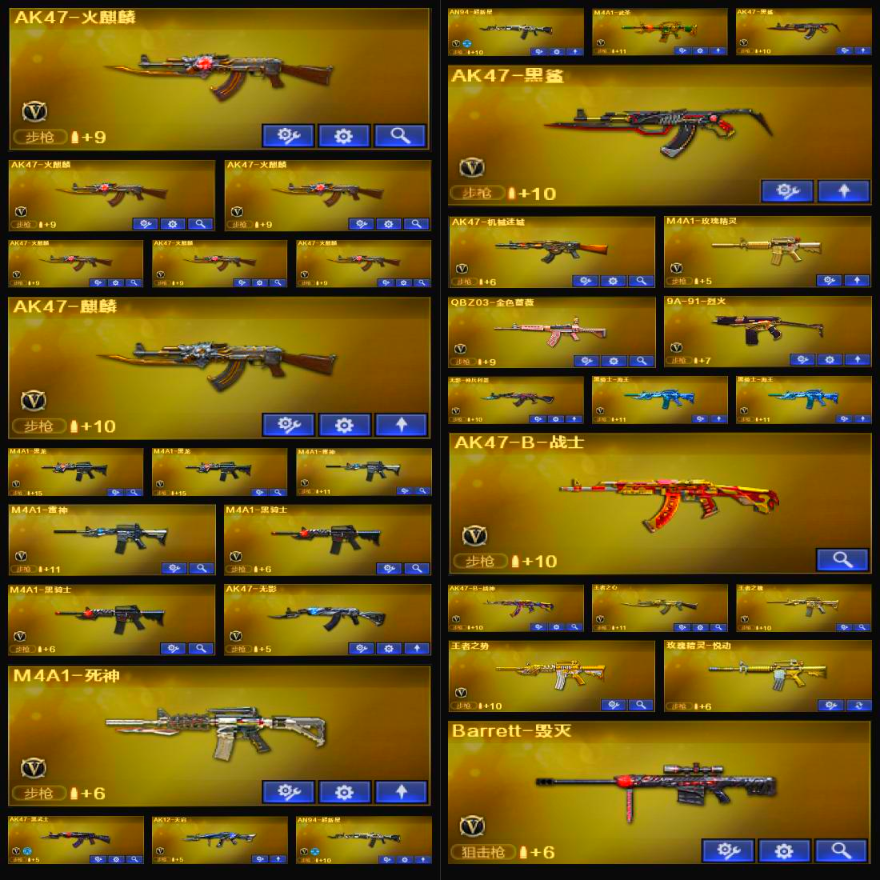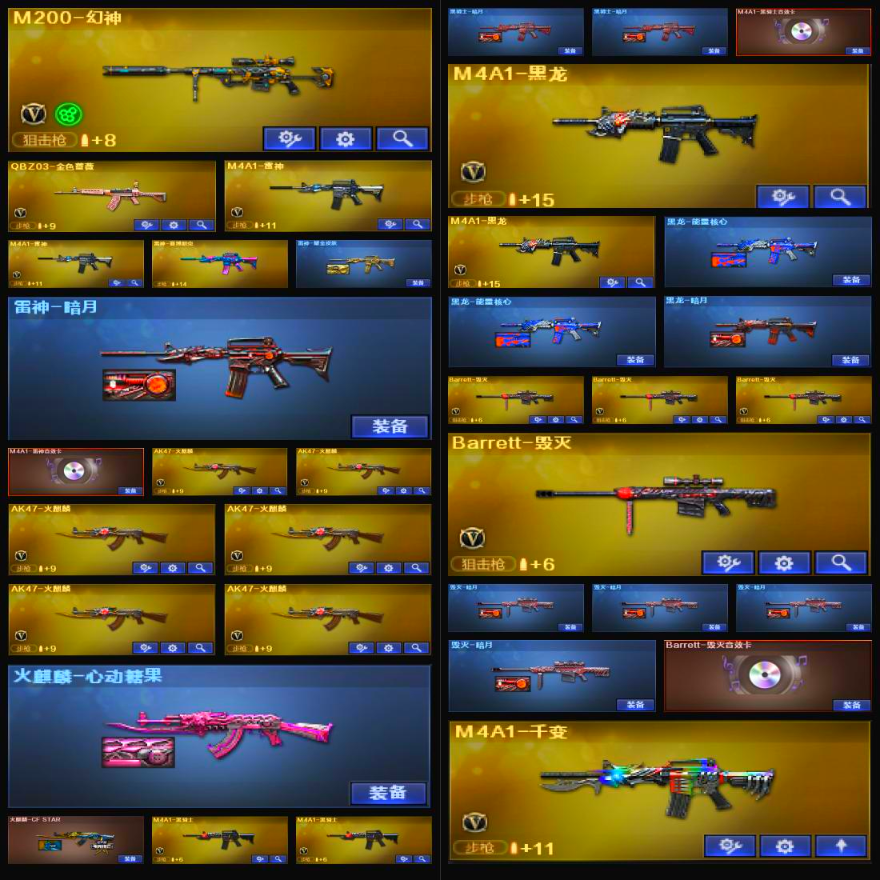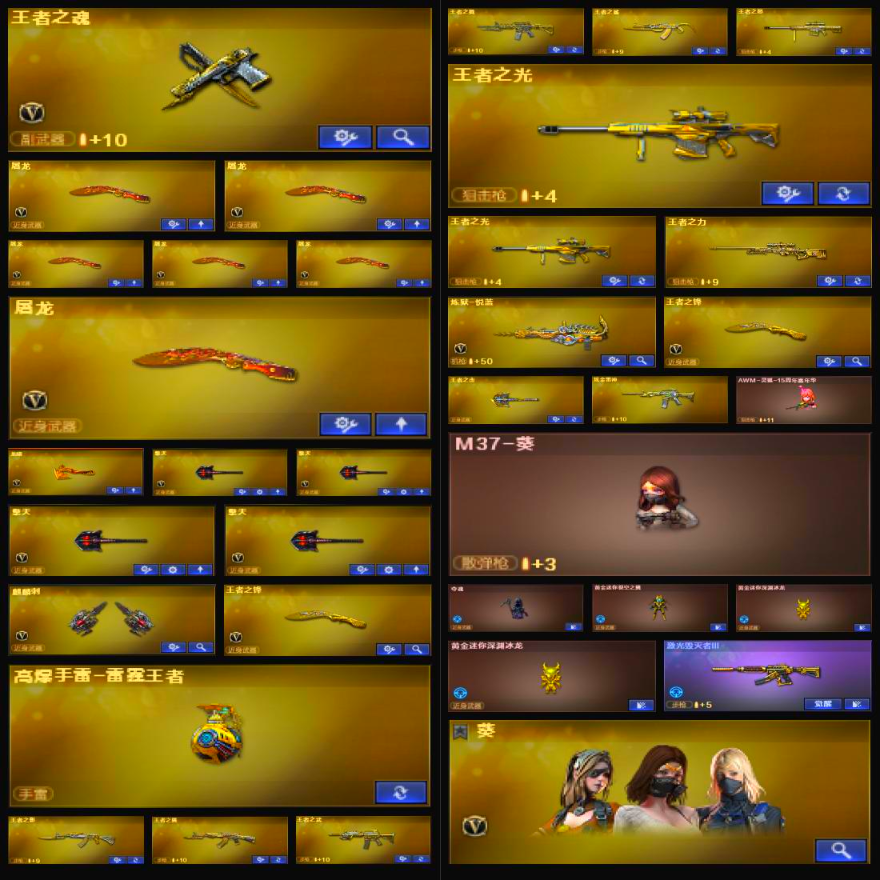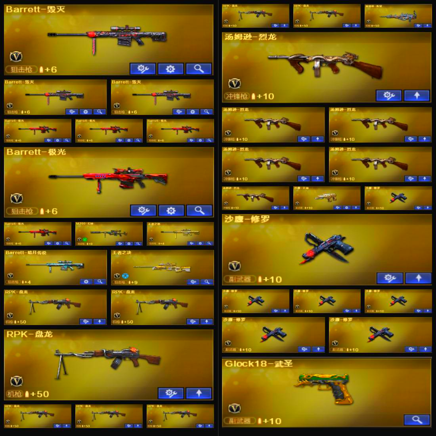 96V+19王者/M200-幻神+QBZ蔷薇/8盘6烈/黑骑士+音效/毁灭SV冠军/王者之心王者之怒王者之魄;RPK-盘龙,QBZ03-金色蔷薇,M200-幻神,