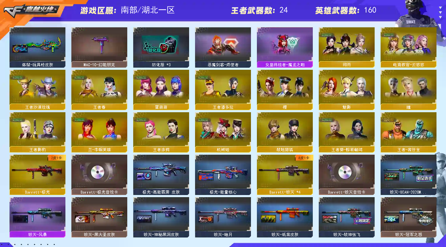 南部天花板 163V🔥传说艾莉莎/灵眸/夜影/幻影/幻神三件套+5皮🔥双宠儿/伏羲/盘古/张飞/马超皮四防 【湖北一区登录】【炫金稀有顶1V介意者勿租】【恶意投诉、撤单不想玩了租错号了等非帐号问题1律拉黑】【此号已备案请勿以身试法】【开挂必究账号价值超高】详细武器请看下方 【重要套装】竞技荣光套装/雷暴套装/四防角色 【重要角色】传说艾莉莎/_瞳/_樱/魅影/电竞教官-云悠悠/隼/雾萌萌/司雨/兰-巾帼英雄/机械姬/王者葵-惊若翩鸿/王者潘多拉/王者涂鸦/王者沙漠玫瑰/王者影豹/雅典娜/王者零-传说之路/王者春/王者-救世主/暗黑审判/乔伊教练/新海豹突击队/荆棘玫瑰/兰-梨园特工/兰-海滩派对/云海玲珑 【传说武器】传说夜影/传说灵眸 【英雄武器】_M200-幻神/M200-竞技荣光/Barrett-毁灭(4)/Barrett-极光/barrett-金色蔷薇/Barrett-暗月传说(3)/AWM-天龙/AWM-裁决/王者之决-觉醒版/M4A1-神工天巧/M4A1-青龙/M4A1-雷神(3)/M4A1-黑龙/M4A1-龙血/M4A1-黑骑士/王者之魄-觉醒版/王者之武-觉醒版/王者之势-觉醒版/王者之圣-觉醒版/王者冰魄-觉醒版/王者风势-觉醒版/_Scar Light-白虎/白虎-电玩蓝兔/白虎之魄-觉醒版/AK12-天启(2)/AK47-火麒麟(3)/AK47-无影/无影-神兵利器/AK47-雷暴/AK47-黑鲨(2)/AK47-黑武士/AK-47-猩红传说(7)/AK47-B-常胜将军/AK47-B-战神(3)/AN94-超新星/QBZ03-金色蔷薇/王者之城-觉醒版/烈火-动感闪耀/9A91-烈火/盘龙-悦心-觉醒版/汤姆逊-烈龙(5)/AA-12-雷霆(2)/加特林-炼狱/COP 357-幻灵(3)/COP 357-雷霆王者-觉醒版/天神-动感闪耀/沙鹰-天神/沙鹰-修罗(4)/柯尔特-竞技荣光/USP-雷暴/USP-神工天巧/麒麟刺(2)/王者之刺-觉醒版(2)/龙啸(4)/王者之啸-觉醒版(2)/擎天/擎天-竞技荣光(5)/王者之击-觉醒版/屠龙-动感闪耀/屠龙(4)/幻灵之锋/王者之锋-觉醒版/斩神刀-雷暴/唐刀-神工天巧(2)/炽芒蝶刃/手雷-动感闪耀/高爆手雷-云龙/高爆手雷-神工天巧/高爆手雷-幻灵(4)/高爆手雷-雷暴(4)/高爆手雷-竞技荣光(7)/烟雾弹-云龙/烟雾弹-神工天巧(2)/烟雾弹-幻灵(4)/烟雾弹-雷暴(5)/烟雾弹-竞技荣光(9)/闪光弹-云龙(2)/闪光弹-神工天巧(3)/闪光弹-幻灵(4)/闪光弹-雷暴(4)/闪光弹-竞技荣光(7)/G36C-幻影/超新星-热带奇洋/黑武士-锦绣游龙/王者风神-觉醒版(2)/烈龙-云海游龙/擎天-云海游龙/龙啸-烈火龙威/龙啸-热带奇洋/手雷-云海游龙/手雷-热带奇洋 【王者武器】凤吟之魄/王者霜心/王者星霆/王者COP-精英刀锋/王者云击/王者之魄闪光弹(2)/王者之魄高爆手雷(2) 【小人枪】白虎-迷你小艾/M4A1-雷神-精英刀锋(2)/牛牛-AK47/C.A.T/AWM-灵狐-15周年嘉年华/MK5-炽火炎龙/斯泰尔-蝴蝶/COP-白鲨(2)/夺魂(2)/迷你白狐/魔能飞环-曼陀罗(2)/迷你波特博士/生化手雷-机甲核心/深渊终结者手雷 【其他重要武器】炫金骑士/炫金毁灭/黑骑士-摸金校尉/激光毁灭者III/冰龙粉碎者-白马银枪/末日审判者III/激光毁灭者III-白马银枪/AK47-朋克/AK47-雷蛇/雷神-赛博幻想/AN94-青花瓷/M4A1-万圣节2020/QBZ03-锋芒破茧/AK47-青龙/G3A3-SS-枪王排位/AK47-万圣节2021/M4A1-樱/AK47-十二生肖-蛇/AK47-丹龙/M4A1-破空冰刃/HK417-红龙/AK-47-二次元/AK-103-红色悦动/雷神-赛博朋克/9A91-赤血龙魂/AK47-破空冰刃(2)/AK47-枪娘/AK47-轮回/M4A1-肯德基/M4A1-S-能量核心/M14EBR-炎龙(2)/AK47-SS-枪王排位/M4A1-紫狱/百城AK47(2)/9A-91翡翠/AK-47-红龙/M4A1-秘银赤龙/AK47-齐天大圣/AK47-绚樱/M4A1-樱落/M4A1-C-海浪/AK47-苍龙/M4A1-水枪-机甲核心/M4CQBR-AP-孔明/黄金AK-47/红龙AK47/9A-91-圣诞/M4A1-圣诞2021/M4A1-S-火种/AK47-大帝林肯/M4A1-电音/M14EBR-朋克/M4A1-SS-枪王排位/凤凰之力/Barrett-黑大圣/Barrett-牛魔王/黄金AWM/M200-神秘黑洞/Barrett-翔龙/AWM-卡通/M200-万圣节2018/AWM-A/Barrett-孔明/AWM-枪娘/Barrett-耀龙/巴雷特-情人节2020/巴雷特-绚樱/M200-涂鸦/AWM-摸金校尉/AWM-深海猎手/AWM-T/Barrett-怒火大圣/M200-牡丹/M82A1-红龙(2)/M200-圣诞/AWM-A-圣诞2021/Barrett-苍龙/暗金M200(2)/M200-萌杀/AWM-盛典-CFS 2022/M200-赤血龙魂/蓝色魅影/M200-大黄蜂/M200-青花瓷(2)/Barrett-捣乱兔兔(2)/AWM-小故障/AWM-恶棍-枪王排位/M200 CheyTac-大圣/M200-WeGame/暗金AWM/M200-青帝/M82A1-飞龙在天/百城AWM/M200-落樱/AWM-A枪王排位II/雷蛇AWM/AWM-Pink/末日裁决者/巨龙咆哮Ⅲ/KAC-情人节2021/M240B-卡通/阿梅利轻机枪-暗夜风暴/M4A1-玄龙/P90-炫彩/雷蛇冲锋枪/斯泰尔-巧克力/MK5-枪王排位/EVOIII-萌杀/CPW-动力-潘多拉/神圣爆裂者-末日(2)/神圣爆裂者/Spas-12-黑金/SPAS-12-雷电核心/Spas-12-幻能朋克/AA-12-圣龙/修罗-年鹏/惩戒者III/柯尔特-百城/凤凰之火/新USP-枪王排位奖励(4)/愤怒公牛左轮-丹龙/愤怒公牛左轮-枪王排位(2)/沙漠之鹰-A-摸金校尉/Cop357-赤龙/COP 357-万圣节2020/沙漠之鹰-炎龙/Anaconda-黑金神龙/Anaconda-雷电核心/蟒蛇-炫彩/COP 357-青龙/新USP-怒火大圣(2)/迷彩沙鹰-70KG/USP-黑大圣/Anaconda-情人节2021/沙鹰-青龙/COP357-十二生肖·羊/Anaconda-麟龙/沙鹰-枪王排位(2)/COP357-朋克/COP 357--绚樱/COP-金蝉子-枪王排位/COP357-神秘黑洞/MAC-10-幻能朋克/COP 357-子鼠/Anaconda-炽焰核心/Cop357-萌杀/金刚伞-电玩红兔/啸天/猫猫手套/末日战神奖杯-银色/尼泊尔-炎龙/斩神刀-御龙/斩魔刀-怒火大圣/收割者-枪王排位/虹光丛林匕首-枪王排位(2)/蝴蝶刀-枪王排位/雷神之怒-机甲核心/尼泊尔军刀-战龙/虹光鹰爪-枪王排位/斩神刀-青帝/魔能镰刀/丛林匕首-枪王排位/虹光女皇利刃-枪王排位/手雷-能量核心(2)/胜利奖杯手雷-枪王排位(2)/闪光弹-枪王排位/胜利奖杯闪光弹-枪王排位(2)/胜