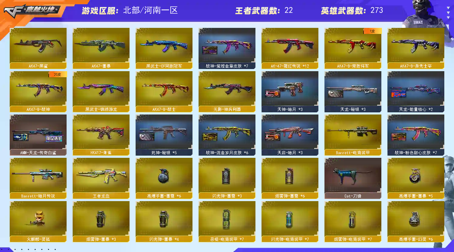 套装上线立马时间安排仓库 可以提前收藏下 小号货架 1129149088 竞技荣光⑦🔥M200-竞技荣光 🔥 电竞教官-云悠悠🔥 柯尔特-竞技荣光 🔥 擎天-竞技荣光🔥 雷🔥闪🔥烟🔥-竞技荣光🔥 裁决-雪莉杨 阿崟300V30王者:虎年威风礼包🔥 幻灵⑦套🔥电竞装甲⑦套🔥98K星空🔥传说暗裔🔥传说光耀🔥王者幻神炎心玲珑🔥堕天神⑦套🔥网剧套🔥无影-霓裳皮肤 🔥全部音效卡🔥雷暴套装🔥雷霆套🔥夜魔套🔥满王者炫金🔥6烈6盘6修6炼🔥满全装 金色小号 Barrett-电竞装甲🔥尼泊尔-电竞装甲🔥柯尔特-电竞装甲🔥王者蔷薇🔥蔷薇青龙🔥武圣青龙🔥武圣赤魂🔥 花手灵狐经理四防🔥传说暗裔🔥白虎🔥朱雀🔥barrett-朱雀🔥沙漠玫瑰四防🔥KAC-圣炎切割者III🔥雷神白鲨CFPLS14冠军皮肤🔥毁灭-AG-CFPLS15🔥COP-白鲨🔥火麒麟-传奇EVEN🔥火麒麟一AG战队皮肤🔥火麒麟-华夏之心🔥 毁灭-sv-CFPLS16冠军🔥火麒麟-轻羽皮肤🔥火麒麟-CF STAR🔥AWM-天龙-传奇70KG🔥金色小号🔥Cat-刀锋🔥 斯泰尔-蝴蝶 🔥斯泰尔-蝴蝶🔥巴雷特-零-水下丽影🔥寒冰征服者-超越Max🔥乱世-超越 北部战区合区大区(河北- -区、辽宁一-区、辽宁二区、辽宁三区、山东一区、山东二区、河南一区、河南二区、北京一区、北京二区、黑龙江- -区、北方大区、北京三区、北京四区、吉林一区、山西一区)登录的时候选择河南- -区。 欢迎老铁提前收藏 不迷路;USP-雷暴,沙漠玫瑰,电竞教官-云悠悠,RPK-盘龙,QBZ03-金色蔷薇,M200-幻神,Scar Light-白虎,