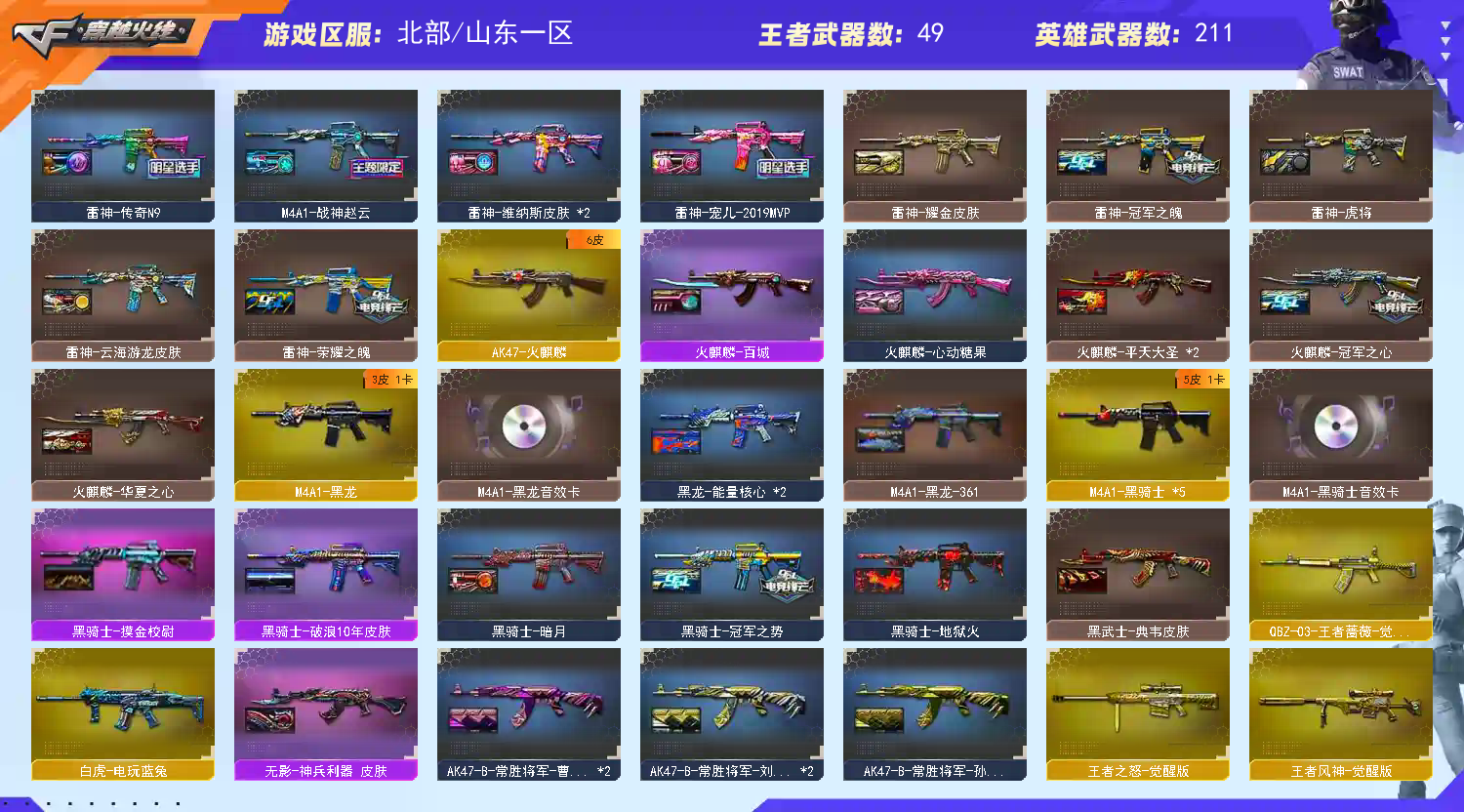 >>>>>>毁号,涉及毁坏虚拟财产罪及计算机安全罪,请文明游戏素质游戏,让我们共建美好租号平台>>>>>> 本游戏账号:英雄武器240个; 王者武器60个。拥有完美游戏体验。 5系列M2000:传说灵牟,王者风神,王者幻神,幻神,竞技荣光 6色幻神:宠儿-荣耀之巅-冠军之幻-CFS2022-骇客电流-黄忠+双光效+音效卡 6传说:女帝,艾丽莎,传说灵牟,传说夜影,传说光辉,传说光耀 50+角色16个4防角色各种稀有角色:女帝艾丽莎,鹰隼,枪娘影豹,沙漠玫瑰,王者潘多拉,雨墨等等.... 16音效卡:QBZ,星神,幻神,白虎,朱雀,极光,毁灭,雷神,黑龙等等.... 极品手枪:冠军之特x3,世冠柯尔特,荣光电竞柯尔特,USP雷暴x2,COPx6,破空枪刃 炽芒蝶刃,迷你宝贝,猫猫手套,冠军之刃x2 C63幻影,朱雀,白虎,玄武,冠军之薇,冠军之虎等等.... 王者星神+星神+音效,王者之决+裁决+3色皮肤:流光+凤灵+百城 本号拥有30+冠军系列皮肤+120+其他系列各种稀有皮肤 生化满配:炽芒蝶刃,迷你宝贝,6烈6盘6炼,斯太尔蝴蝶,毒蜂,迷你小钢,3色炼狱斗鱼玩具月,各种换肤:女皇终结-堕落天使,虚空终结-暗域熔岩,终极猎手-荒漠刀客,时空猎手-幻影猎人等等....;USP-雷暴,荣耀世冠-柯尔特,柯尔特-冠军之特,炽芒蝶刃,Knife-冠军之刃,传说女帝,隼,