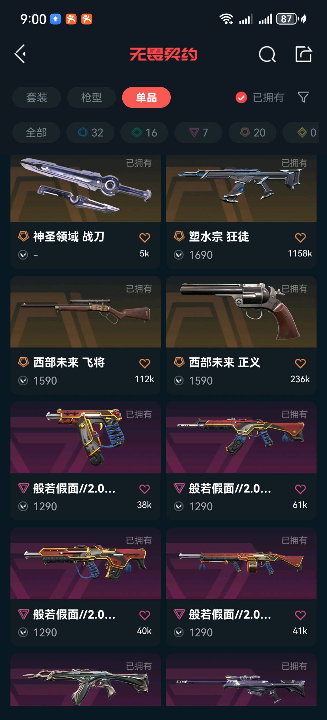 首页 > 租号大厅 > 无畏契约-wegame > wegame/wegame > 暗夜怪谈 西部未来飞将 正义 奇点全 般若二全 素水 紫金 2 可排位 24冠军