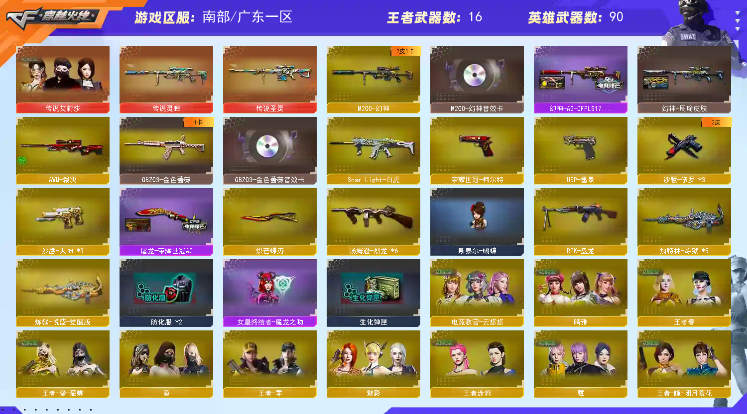首页 > 租号大厅 > 穿越火线 > 电信区/广东一区 > 【允许排位】传说灵眸/艾丽莎/幻神AG+音+雷暴/圣灵/王者星神/芒蝶刃/蔷薇+音/生化6盘6烈蝴蝶