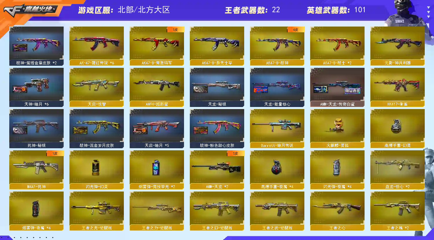 【BF165】 【可排位荣耀枪王】 【温馨提示】此号为高信誉爆破全装号,不要太离谱基本不会黑屋,请各位大佬不要开挂、挂机、逃跑等等(目前逃跑次数过多),价格如此低的不多了。信誉分不足时请在新版大厅匹配游戏!请使用官方启动,辅助设置左下角纯净模式,更快捷稳定上号。Q Q登录游戏界面时偶尔会异地风险,显示密码已更改/冻结/泄露/错误,请维权后台【账号异常或者号主协助】更新密码,商品撤单处理完成代表密码已更新,再次下单即可正常登录游戏,带来的不便,请见谅!!!恶意维权及检测到外挂将无法再次下单.感谢各位大佬的配合. 【昵称】为你心动 【角色】零、迷迭香、王者玲珑小乔、王者之瞳、炽天使、虎妞、救世主X、空、兰海滩派对、兰新年限定、零水下丽影、灵狐者黄金海岸、圣诞潘多拉X、蜀雪、铁骑乘风破浪、铁骑荣耀、王者魅影、新猎狐者、新娜塔莎、影舞者X、职业选手、 【主武】千变、火麒麟X2、黑龙X2、雷神X2、黑骑士X3、无影X4、死神、黑武士、AK12天启X2、超新星、机械迷城X2、青龙、朱雀、白虎、QBZ03金色蔷薇、烈火、王者之武、王者之幻、猩红传说X6、AK47-B-战士X2、AK47-B-战神、黑武士cf网剧冠军武器套装、黑骑士海王、AK47-B-身先士卒、AK47-B-常胜将军、天龙X2、Barrett-毁灭X3、幻神、极光X2、王者之力、Barrett-暗月传说、王者幻神、盘龙X6、炼狱X2、6烈龙、AA12雷霆、雷神精英刀锋、火麒麟灵狐、王者之魄X2、王者之势、王者之武、王者之心、王者之翼、炫金武士、王者之光、王者之怒、死亡之眼、巴雷特水下丽影、 【副武】修罗X5、天神X3、 【近身】 屠龙X3、龙啸X2、擎天X3、麒麟刺、王者之啸、水晶宝珠、 【投掷】高爆幻灵、闪光幻灵、双生雷恶棍、音乐手雷、迷你生化手雷 【音效】幻神音效、雷神音效、火麒麟音效、黑骑士音效、Barrett-毁灭音效 【道具】超级对讲机、超级背包、炫彩背包、狙机枪弹匣、步枪弹匣、冲锋枪弹匣、 【皮肤】死神秘银、火麒麟轻羽、擎天秘银、毁灭SVCFPLS16、黑骑士暗月、雷神传奇N9、火麒麟平天大圣、AK47-B常胜将军、黑骑士冠军之势、天神暗月、天启暗月、毁灭暗月、无影暗月、火麒麟CFSTAR、天龙能量核心、黑龙能量核心、雷神能量核心、火麒麟传奇EVEM、毁灭耀金、火麒麟雷神、毁灭荣耀之怒、修罗CFS2018、无影能量核心、无影耀金、修罗能量核心、雷神星空、天龙CFSTAR、雷神暗月、火麒麟冠军之心、雷神烈虎、极光能量核心、火麒麟AG、天龙传奇白鲨、天龙秘银、雷神能量核心、火麒麟轻羽、 【生化】灵魂忍者、妖姬、夺命之镰、疯狂宝贝、灵魂忍者、防化服、变异宝贝、生化弹匣 【更新时间】2022年5月18日 【北部战区】山东网通一区、山东网通二区、北方网通大区、河南网通一区、河南网通二区、河北网通一区、山西网通一区、北京网通一区、北京网通二区、北京网通三区、北京网通四区、吉林网通一区、黑龙江网通一区、辽宁网通一区、辽宁网通二区、辽宁网通三区(CF相同战区进入相同频道可以一起玩);RPK-盘龙,QBZ03-金色蔷薇,M200-幻神,Scar Light-白虎,