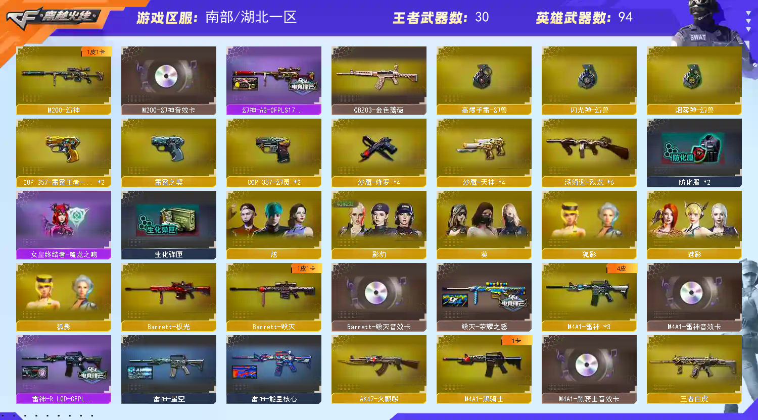 首页 > 租号大厅 > 穿越火线 > 电信区/湖北一区 > 禁赛!!!幻兽套🔥幻神音效卡ag皮🔥五把COP雷霆幻灵全套毁灭荣耀+音六烈雷神lgd+音四防影豹