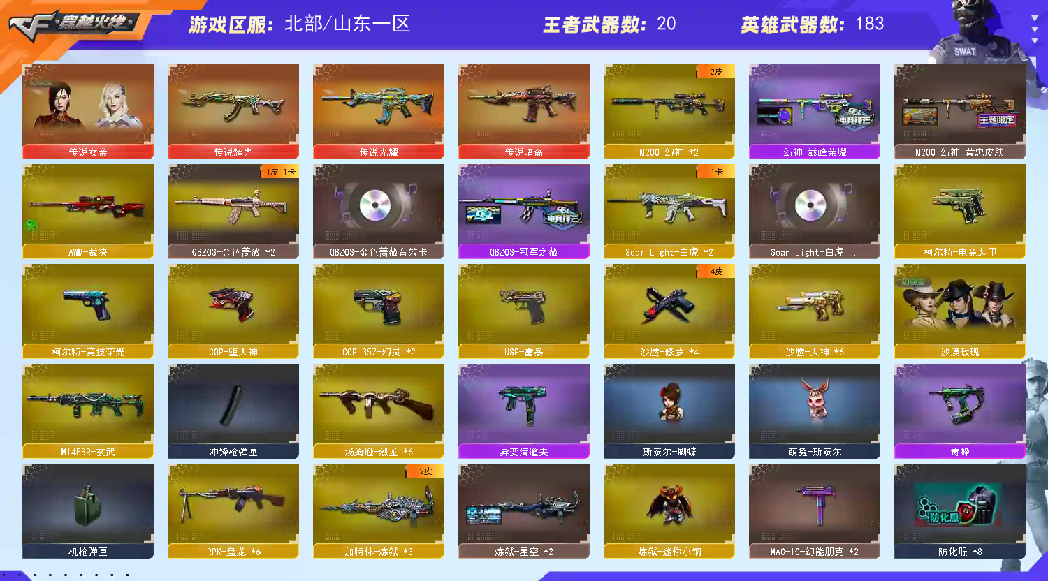 首页 > 租号大厅 > 穿越火线 > 网通区/山东一区 > 传说女帝鲨臂丨时空猎手皮+萌兔-蝴蝶清道夫毒蜂6烈6盘沙漠玫瑰✅幻灵套玄武✅鹰冠军薇巅峰幻神星神