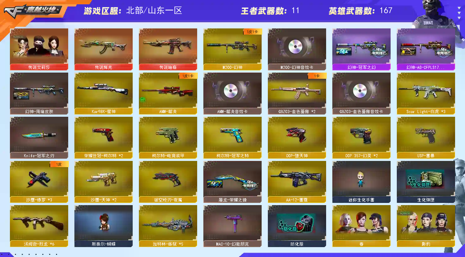 生化爆破全装可排位、幻神+冠军+周瑜+2017音效卡传、传说艾莉白虎、雷暴、星神、6烈+斯太尔蝴、