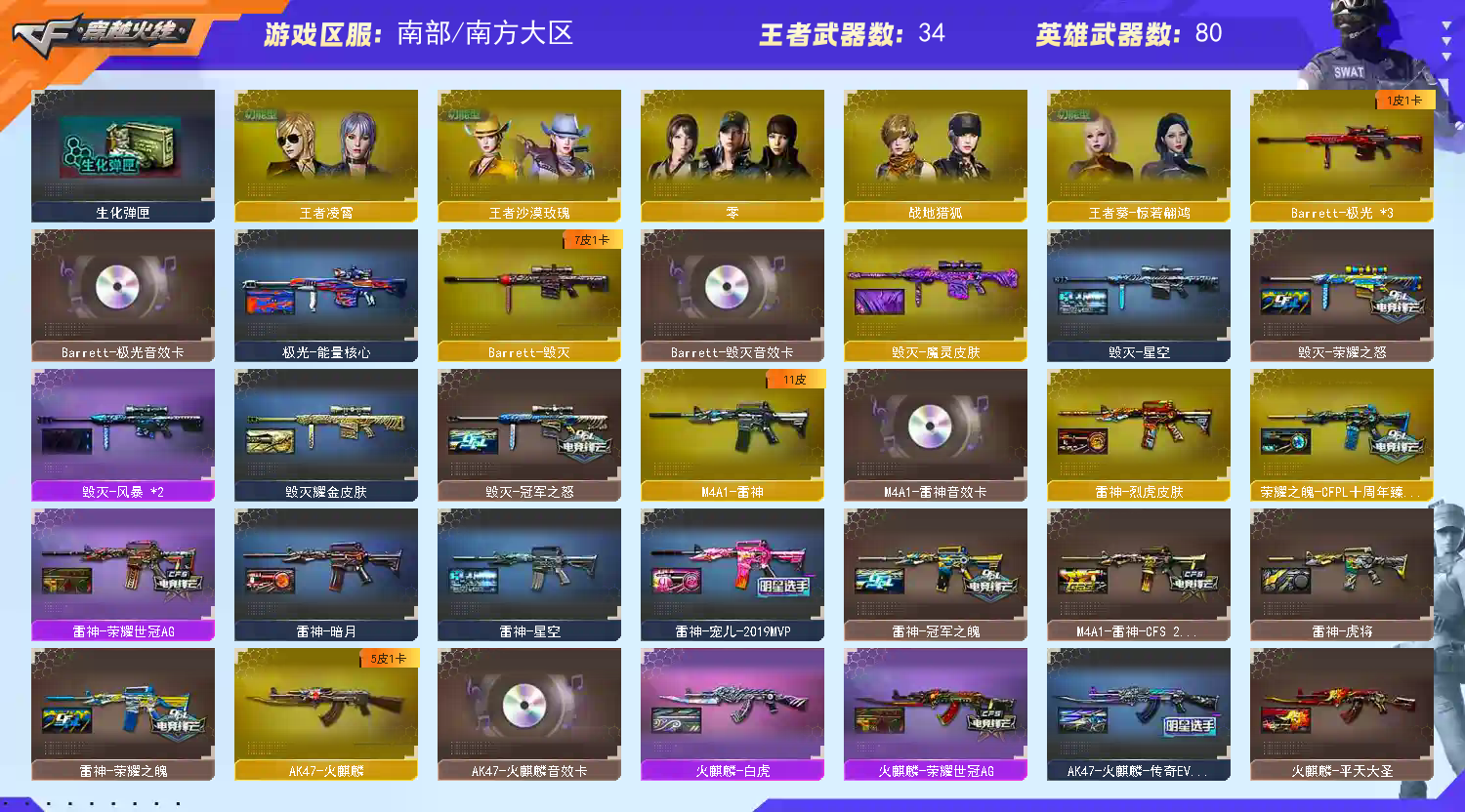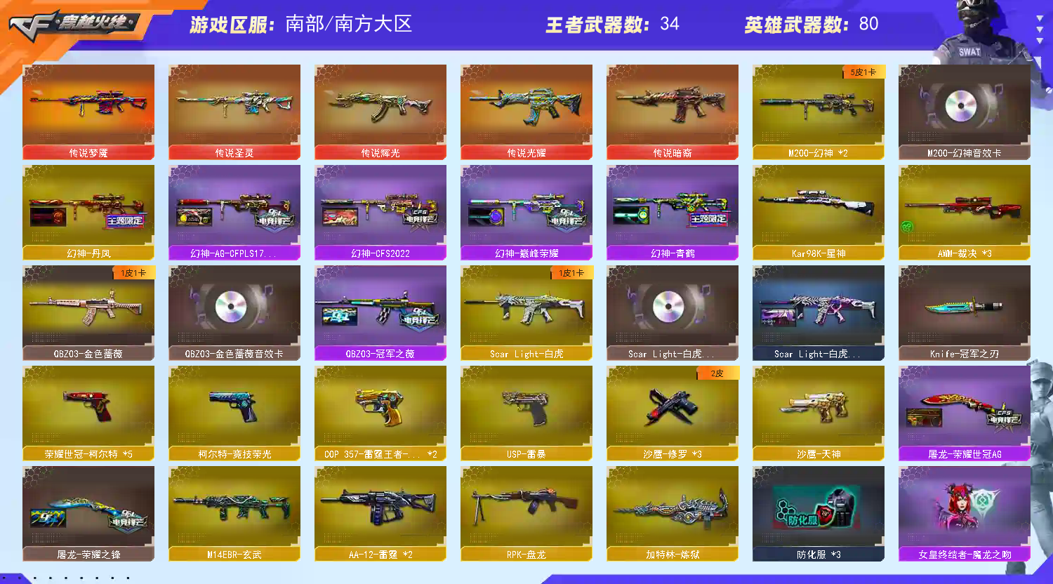 首页 > 租号大厅 > 穿越火线 > 电信区/南方大区 > 六色幻神星神CFS幻神冠军Ag幻神音效卡白虎十周年臻藏雷神多皮肤✨冠军之刃usp雷暴cop雷霆王者