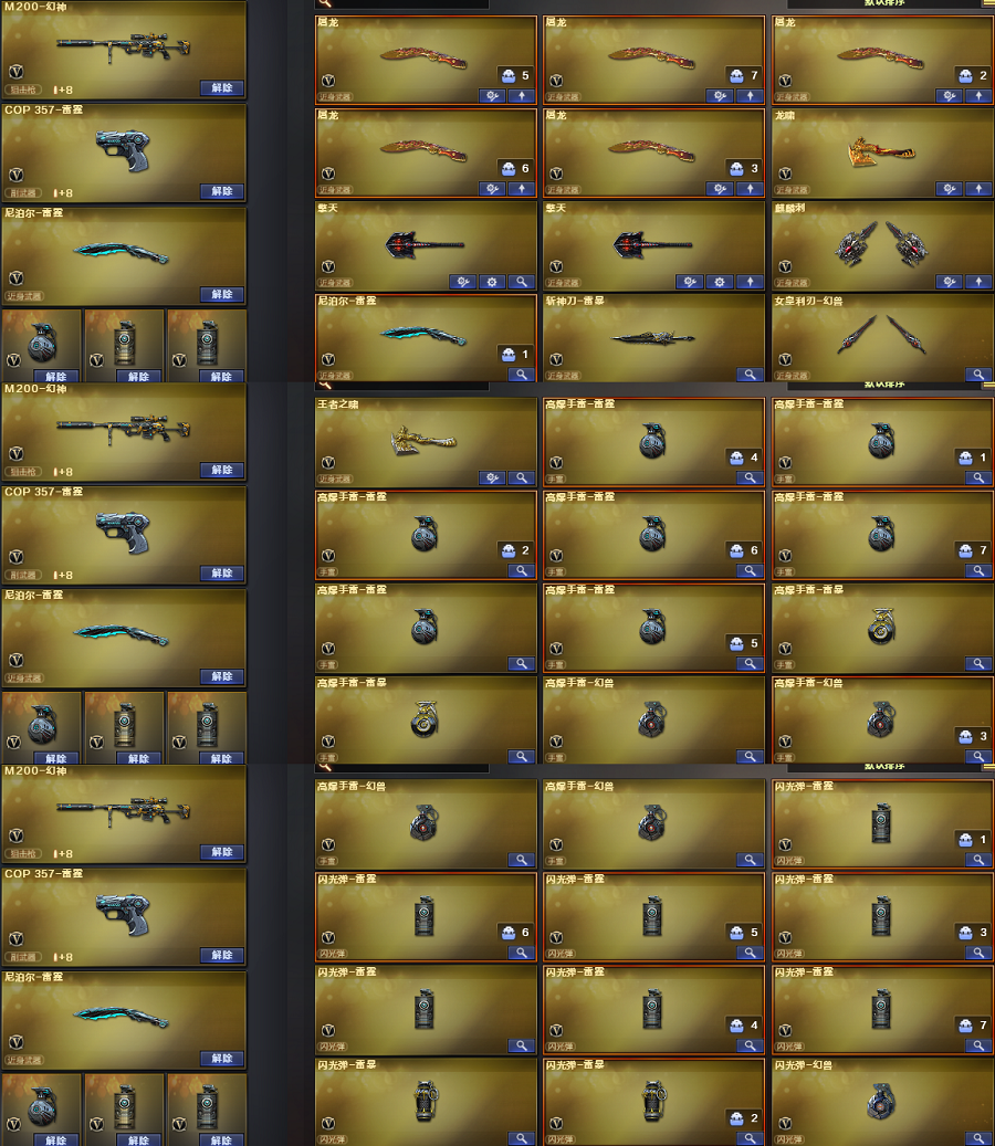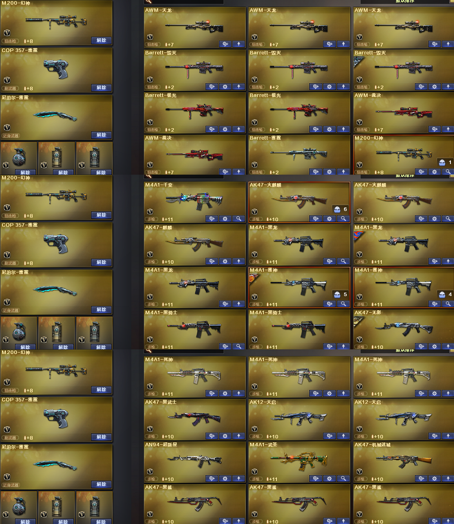 147V幻神M200/6烈龙死亡之眼/6盘龙炼狱/幻兽套/雷霆套/朱雀/qbz03金色蔷薇/3音效卡