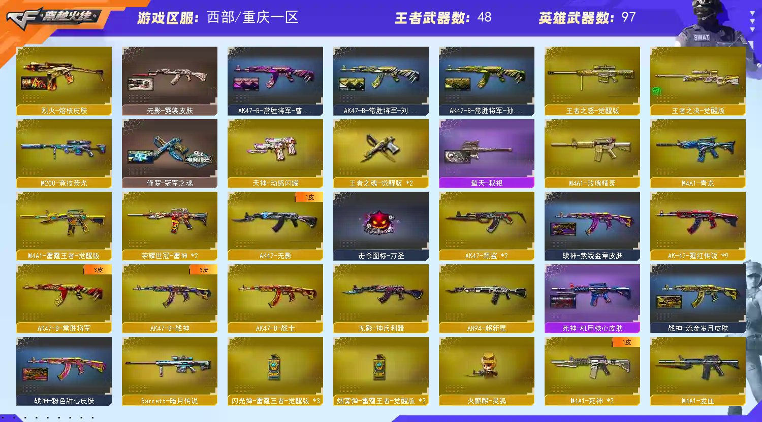 • 游戏区服:穿越火线 / 电信区 / 重庆一区