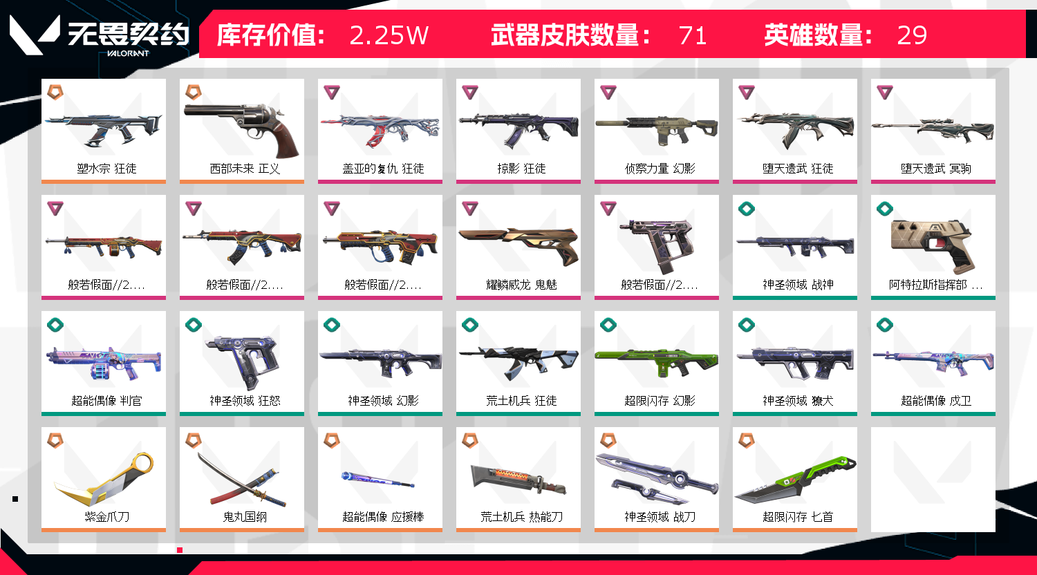 • 武器皮肤数量: 71