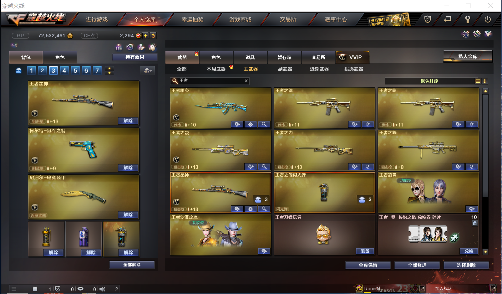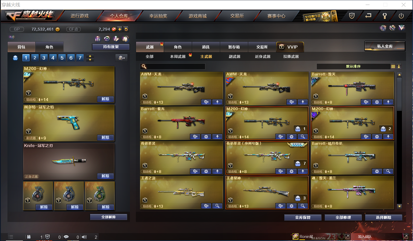 【科技大佬,请你高抬贵手,家里就靠这个号吃饭了,本人上有老,下有小,请你用一丝丝善意想想,给我留一条生路吧,感谢您到来过,谢谢!】 出租不易~~且玩且珍惜~~感谢!!!!!;柯尔特-冠军之特,Knife-冠军之刃,传说女帝,王者沙漠玫瑰,QBZ03-金色蔷薇,M200-幻神,Scar Light-白虎,