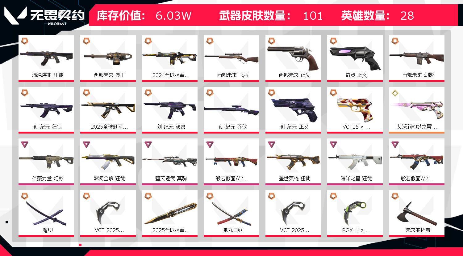 首页 > 租号大厅 > 无畏契约-wegame > wegame/wegame > 25冠军套满特效神h挂饰新套装全!VCT爪l!西部边陲套装!创纪元套❤️雷切❤️显卡爪鬼丸VCT25