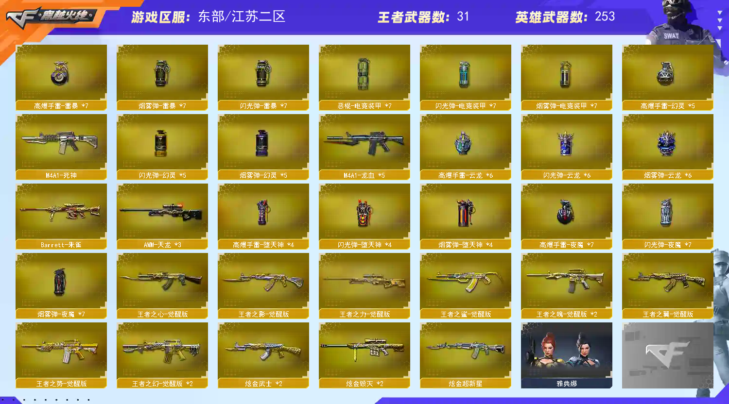 东部号 256V🔥传说影煞/破晓/幻神三件套+N9/宠儿/王者星霆🔥枪娘/女团/娜塔莉亚/双宠儿皮四防【江苏二区登录】【炫金稀有顶1V介意者勿租】【恶意投诉、撤单不想玩了租错号了等非帐号问题1律拉黑】【此号已备案请勿以身试法】【开挂必究账号价值超高】详细武器请看下方 【重要套装】电竞装甲套装/网剧冠军套装/夜魔套装/雷暴套装/云龙套装/四防角色 【重要角色】传说影煞/_樱/_炫/_瞳/_葵/_凌霄/_零/_影豹/_沙漠玫瑰/魅影/_迷迭香/_春/王者春/王者-魅影/王者樱-热浪之夏/王者空/王者影豹/王者凌霄/王者-救世主/雅典娜/王者-零/王者之瞳/新海豹突击队/队长肖枫/电竞少女/职业选手/灵狐者-职业经理/胡司令/铁骑荣耀/女战神/空/零-水下丽影 【传说武器】传说破晓 【英雄武器】_M200-幻神/Barrett-毁灭/Barrett-极光(2)/Barrett-朱雀/Barrett-电竞装甲/barrett-金色蔷薇/Barrett-暗月传说/AWM-天龙(3)/王者之力-觉醒版/M4A1-青龙/M4A1-雷神(2)/M4A1-死神/M4A1-黑龙/M4A1-龙血(5)/M4A1-千变/M4A1-黑骑士(7)/黑骑士-海王/M4A1-武圣/M4A1-夜魔/M4A1-雷霆/M4A1-玫瑰精灵/王者之魄-觉醒版(2)/王者之势-觉醒版/王者之幻-觉醒版(2)/_Scar Light-白虎/AK12-天启(4)/AK47-火麒麟/AK47-无影/AK47-雷暴(2)/AK47-黑鲨/AK47-黑武士/黑武士-CF网剧冠军/AK-47-猩红传说(7)/AK47-机械迷城/AK47-B-身先士卒/AK47-B-常胜将军/AK47-B-战士(2)/AK47-B-战神/QBZ03-云龙/QBZ03-金色蔷薇/王者之心-觉醒版/王者之影-觉醒版/王者之翼-觉醒版/王者之鲨-觉醒版/9A91-烈火(2)/RPK-盘龙(5)/汤姆逊-烈龙(9)/加特林-炼狱(2)/COP-堕天神(3)/COP 357-云龙/COP 357-幻灵/雷霆之契/沙鹰-天神(3)/天神-CF网剧冠军/沙鹰-修罗(4)/王者之魂-觉醒版/破空枪刃-夜魔(2)/柯尔特-冠军之特/柯尔特-电竞装甲/USP-雷暴/云龙扇/麒麟刺(5)/麒麟刺-堕天神(2)/王者之刺-觉醒版/龙啸/龙啸-堕天神/荣耀世冠-龙啸/王者之啸-觉醒版(2)/擎天(3)/擎天-CF网剧冠军/王者之击-觉醒版(2)/屠龙(5)/雷霆之锋/幻灵之锋/尼泊尔-电竞装甲/王者之锋-觉醒版(2)/马来剑-夜魔/斩神刀-雷暴/炽芒蝶刃(2)/高爆手雷-云龙(6)/高爆手雷-幻灵(5)/高爆手雷-雷暴(7)/高爆手雷-雷霆(5)/高爆手雷-夜魔(7)/高爆手雷-堕天神(4)/烟雾弹-云龙(6)/烟雾弹-幻灵(5)/烟雾弹-雷暴(7)/烟雾弹-雷霆(5)/烟雾弹-夜魔(7)/烟雾弹-堕天神(4)/烟雾弹-电竞装甲(7)/恶棍-电竞装甲(7)/闪光弹-云龙(6)/闪光弹-幻灵(5)/闪光弹-雷暴(7)/闪光弹-雷霆(5)/闪光弹-夜魔(7)/闪光弹-堕天神(4)/闪光弹-电竞装甲(7)/黑武士-锦绣游龙/超新星-热带奇洋/龙啸-热带奇洋/手雷-热带奇洋 【王者武器】王者星霆/雷霆王者之锋/高爆手雷-雷霆王者 【小人枪】白虎-枪娘安妮/M4A1-雷神-精英刀锋/雷神-小红/巴雷特-零-水下丽影/AWM-灵狐-15周年嘉年华/MK5-炽火炎龙/COP-旗袍/夺魂/迷你深渊冰龙(4)/冰火魔兽/闪光弹-小乔/迷你生化手雷(3)/生化手雷-小钢/烟雾弹-Orange-虎牙娘/闪光弹-貂蝉/高爆手雷-大乔 【其他重要武器】炫金武士(2)/炫金毁灭(2)/火麒麟-能量核心/M4A1-英雄-能量核心/激光毁灭者III(4)/AK47-冰龙粉碎者/机甲撕裂者III/9A91-蓝色骑士/AK47-十二生肖-蛇/M4A1-S-能量核心/M4A1-战龙/AK47-十年火线/M4A1-秘银赤龙/AK47-狂欢-CFS/AK12-幽灵/M4A1-PINK(2)/M4A1-破空冰刃/AK47-B-十周年/AK47-樱花/AK47-SS-9周年/56式步枪-梨花/M4A1-樱花/M4A1-XS-翔龙/AK47-肯德基/金色小号/M4A1-青龙./M4A1-肯德基/M4A1-Guitar 炫彩/凤凰之魄/AK47-圣诞节[2019]/9A91-赤血龙魂/AK47-破空冰刃/M14EBR-情人节2020/AK47-绚樱/QBZ03-吕布(2)/QBZ03-锋芒破茧/9A-91翡翠/黄金AK-47(2)/AK-103-红色悦动/HK417-赤血龙魂(5)/红龙AK47(2)/M14EBR-赤血龙魂(4)/AK-12-CFS2017纪念版/AK47-QT/AK-47-二次元/AK47-青龙/AK47-大帝林肯/HK417-红龙/AT15-万圣节/火麒麟-小电视特供/M4CQBR-AP-孔明/XM8-炫彩/M4A1-狂欢-CFS/AK-47-红龙/百城M4A1/百城AK47/神罚/AWM-万圣节刀锋/M200-赤血龙魂(9)/AWM-A/暗金AWM/AWM-涂鸦(2)/AWM-黑金/Barrett-耀龙(2)/Barrett-翔龙/AWM-圣诞/凤凰之力/Barrett-御龙/AWM-S/M200-万圣节2018/AWM-万圣节2019/M82A1-红龙/M200-牡丹/AWM-蓝水晶(2)/巴雷特-情人节2020/98K-火线13周年/AWM-Red/Barrett-捣乱兔兔/M82A1-飞龙在天/M200-涂鸦/98K-炫彩/Barrett-苍龙(2)/黄金AWM(2)/FN弩炮-CFS2017纪念版/AWM-T/M200-枪王排位/Barrett-怒火大圣/AWM-卡通/Barrett-孔明/Barrett-麟龙/AWM-恶棍-枪王排位/AWM-CFS 2020/M200-大黄蜂/暗金M200/AWM-红色悦动/98K-蓝色骑士/破天狂龙/AWM-银月/M82A1-封神/AWM-恶棍/百城AWM/蓝色魅影/KAC-圣炎切割者III/巨龙咆哮Ⅲ/MG4-蓝色骑士/MG3-翔龙/KAC-小动物/KAC-耀龙/雷蛇加特林/M240B-卡通/斯太尔-能量核心/MK5-圣诞/斯泰尔-巧克力/EVO III-赤血龙魂/EVOIII-萌杀/MK5-枪王排位/P90-炫彩/斯泰尔-CFS2017纪念版/神圣爆裂者-末日(3)/神圣爆裂者(2)/征服者-地狱之火 [Lv Max]/Spas-12-黑金/SPAS-12-雷电核心(2)/Spas-12-幻能朋克/AA-12-圣龙/阐释者III/沙漠之鹰-炎龙/Anaconda-黑金神龙/凤凰之灵/凤凰之火/Anaconda-炽焰核心(2)/Anaconda-万圣节2019/Anaconda-雷电核心(3)/沙鹰-枪王排位/COP-机甲刑天/COP-金蝉子-枪王排位/幻影Anaconda-枪王排位/COLT 1911-雷唤苍龙/MAC-10-幻能朋克(2)/迷彩沙鹰-70KG/幻影沙鹰-枪王排位/蟒蛇-炫彩/USP-黑大圣/愤怒公牛左轮-枪王排位/COP357-十二生肖·羊/COP357-朋克/愤怒的公牛-朋克/COP 357--绚樱/新USP-枪王排位奖励/柯尔特-百城/猫猫手套/唐刀-九五至尊/丛林匕首-枪王排位/军用铁锹-赤龙/啸天/尼泊尔军刀-9周年/无畏之矛/军用手斧-能量核心/丛林匕首-卧龙/幻影双斧-枪王排位/幻影扳手-