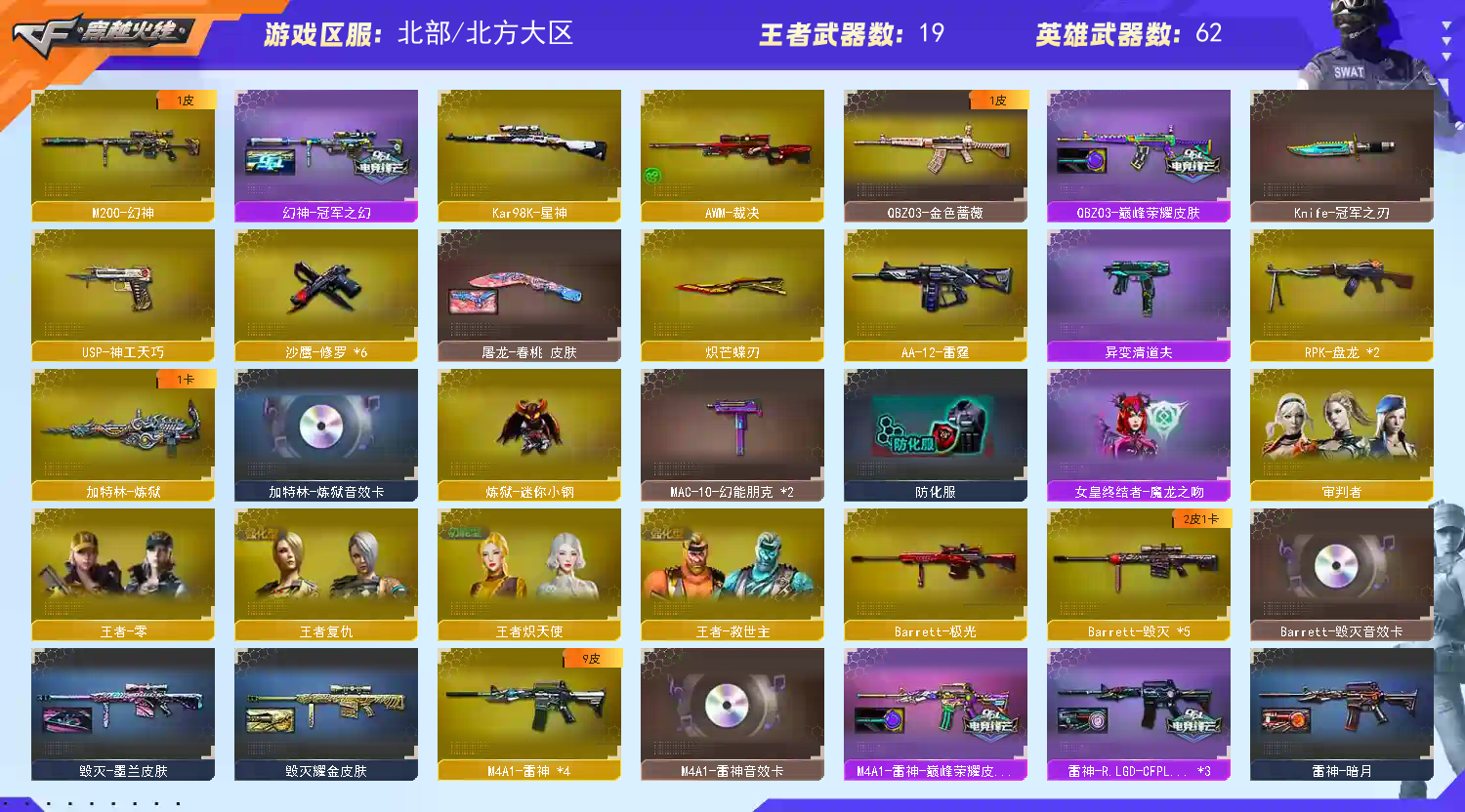 幻神冠军,神功天巧套装,冠军小刀,蝴蝶刀 王者炽天使,98k星神白虎, 别开挂,随便玩;炽芒蝶刃,Knife-冠军之刃,RPK-盘龙,QBZ03-金色蔷薇,M200-幻神,Kar98K-星神,