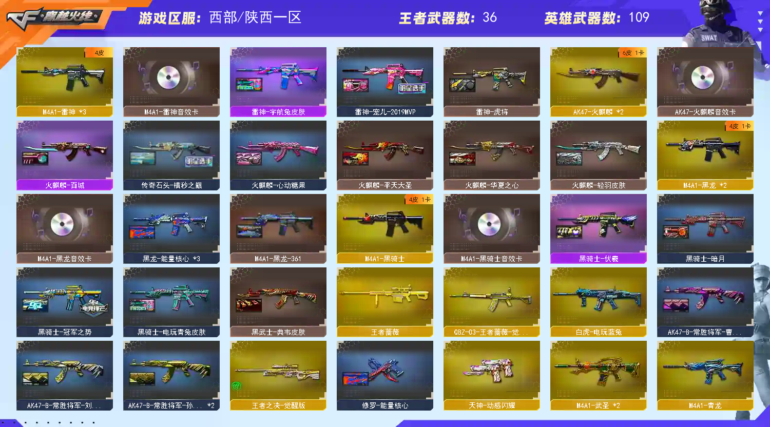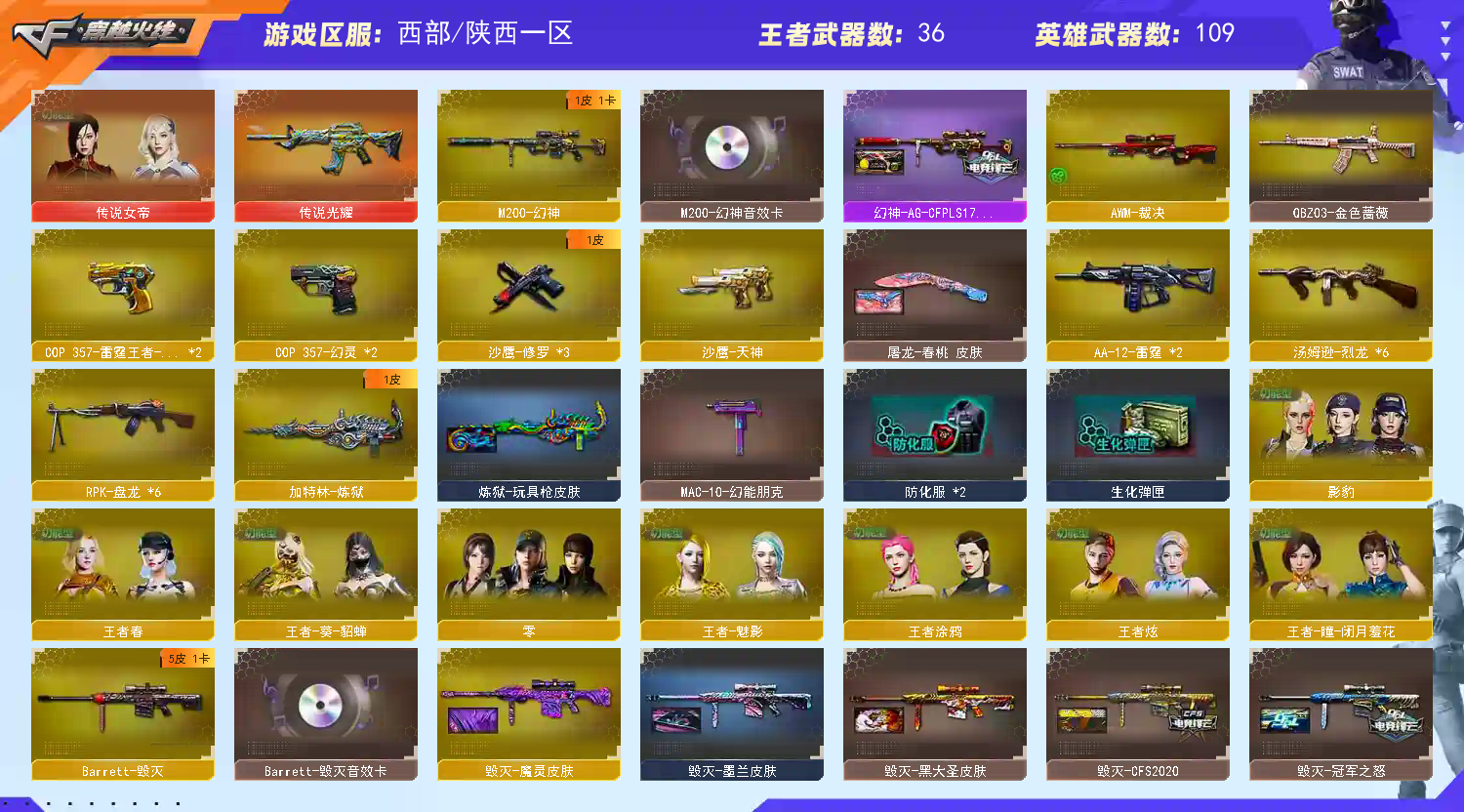• 游戏区服:穿越火线 / 电信区 / 陕西一区