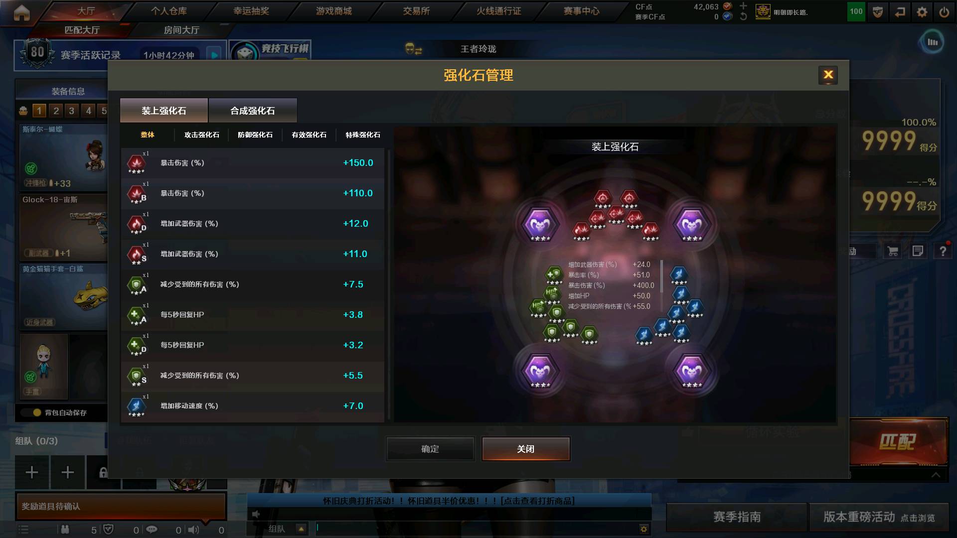 三全装|传说幽冥|王者风神|星神|六烈四防隼蝴蝶|鲨臂|竞技套|天罚六白虎|挑战满配|稀有近战武器|