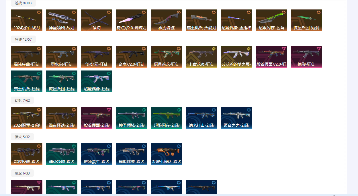 【皮肤资产价值】48900 【使用R点】1190 【英雄数量】20 【皮肤数量】92 【卡面数量】111 【喷漆数量】109 【挂件数量】82 【拥有套装】创纪元套装(创·纪元-狂徒,创·纪元-莽侠,创·纪元-骇灵,创·纪元-正义,镭切)黯夜怪谈套装(黯夜怪谈-幻影,黯夜怪谈-獠犬,黯夜怪谈-飞将,黯夜怪谈-标配,夜刃诡镰)奇点2.0套装(奇点//2.0-狂徒,奇点//2.0-鬼魅,奇点//2.0-蝴蝶刀)2024全球冠军赛套装(2024全球冠军赛-幻影,2024全球冠军赛-战刀) 【拥有近战武器】神圣领域-战刀,荒土机兵-热能刀,超限闪存-匕首,超能偶像-应援棒,流星兵团-短剑, 【拥有步枪】混沌序曲-狂徒,塑水宗-狂徒,偃月苍龙-狂徒,上古龙炎-狂徒,艾沃莉的梦之翼-狂徒,般若假面//2.0-狂徒,天界神兵-戍卫,般若假面-幻影,掠影-狂徒,神圣领域-獠犬,神圣领域-幻影,荒土机兵-狂徒,超限闪存-幻影,超能偶像-狂徒,超能偶像-戍卫,流星兵团-狂徒,月球哨兵-戍卫,逆冲蛮牛-戍卫,逆冲蛮牛-獠犬,纳米-幻影,浮光跃金-戍卫,模拟赫兹-獠犬,聚合之力-幻影,采蜜小蜂队-獠犬,战术熊与伙伴们-戍卫, 【拥有狙击枪】堕天遗武-冥驹,荒土机兵-冥驹,超限闪存-莽侠,星云暗涌-冥驹,月球哨兵-莽侠,模拟赫兹-冥驹,聚合之力-飞将,战术熊与伙伴们-飞将,纤云弄巧-莽侠, 【拥有机枪】神圣领域-战神,流星兵团-奥丁,纳米-奥丁,浮光跃金-战神,采蜜小蜂队-战神, 【拥有冲锋枪】荒土机兵-骇灵,超限闪存-蜂刺,流星兵团-骇灵,星云暗涌-骇灵,星云暗涌-蜂刺,浮光跃金-骇灵,聚合之力-蜂刺,纤云弄巧-蜂刺, 【拥有霰弹枪】超能偶像-判官,月球哨兵-雄鹿,纳米-判官,逆冲蛮牛-雄鹿,模拟赫兹-雄鹿,采蜜小蜂队-判官, 【拥有手枪】掠影-正义,神圣领域-狂怒,荒土机兵-标配,超限闪存-正义,超能偶像-标配,流星兵团-鬼魅,星云暗涌-鬼魅,月球哨兵-正义,逆冲蛮牛-狂怒,纳米-正义,模拟赫兹-鬼魅,浮光跃金-标配,游戏结束-正义,聚合之力-狂怒,采蜜小蜂队-鬼魅,战术熊与伙伴们-狂怒,纤云弄巧-正义,战术熊与伙伴们-标配,纤云弄巧-短炮, 【稀有挂件】猫猫木乃伊挂饰,终章猫猫木乃伊挂饰,拳击战术熊挂饰,无畏契约GO卷芮娜挂饰,无畏契约GO卷零挂饰,熔岩灯挂饰,2024全球冠军赛挂饰,袖珍捷风挂饰,超能偶像挂饰,采蜜小蜂队挂饰,糖葫芦挂饰,迷你浓缩挂饰,终章迷你机甲挂饰,迷你机甲挂饰,云开见日挂饰,章鱼烧先生挂饰,战术河童挂饰,2021冠军巡回赛花火挂饰,好运福爪挂饰,章鱼小弟挂饰,无畏契约GO卷捷风挂饰, 【卡面信息】分崩离析卡面,情人节不死鸟卡面,我眼中的世界卡面,双城之战拥抱卡面,无畏契约吉祥物卡面,超能偶像卡面,Luie卡面,情人节捷风卡面,;