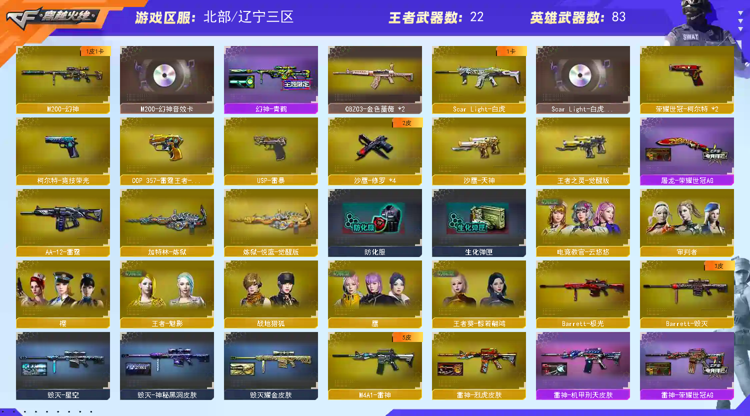 首页 > 租号大厅 > 穿越火线 > 网通区/辽宁三区 > 110V、幻神青鹤✨幻神音效卡✨极品7副い雷暴cop柯尔特|98k星神|白虎qbz裁决|爆破4防
