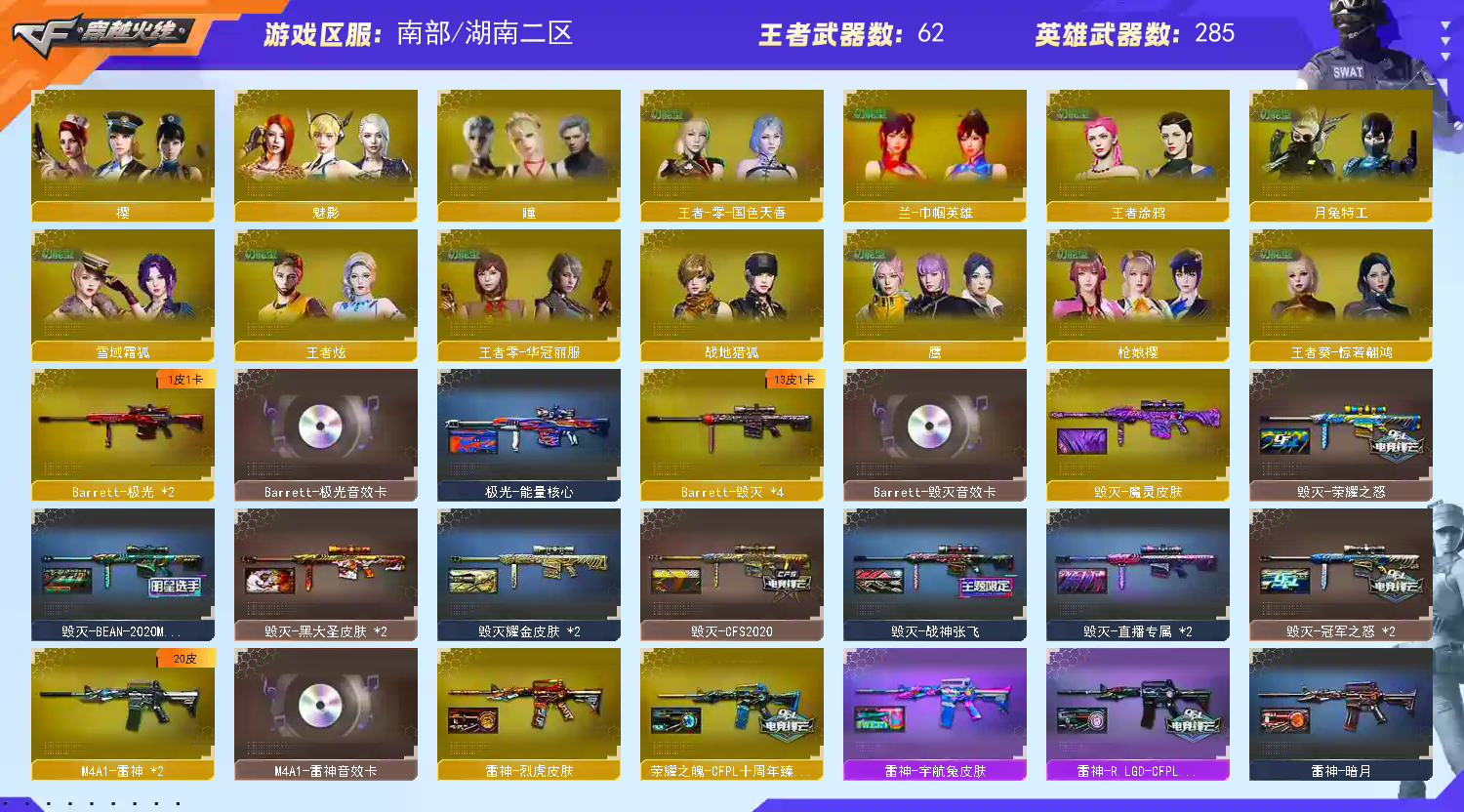 首页 > 租号大厅 > 穿越火线 > 电信区/湖南二区 > 🍃加利尔天袭法玛斯天戎6幻16皮🔥序列8888臻藏幻影暗刃金牛金峰萌兔音效卡33挑战全3+3属性