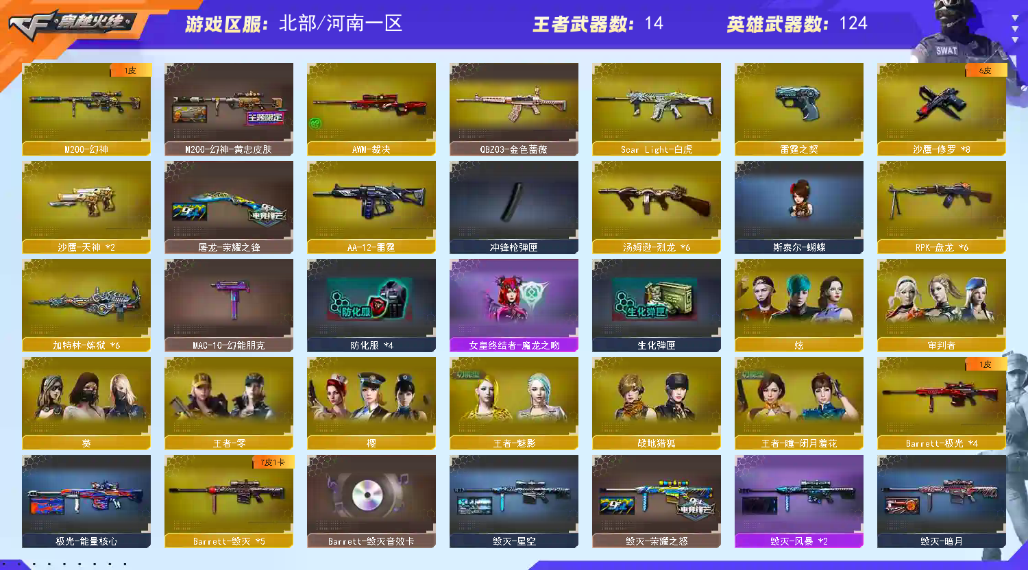 >>>>>>毁号,涉及毁坏虚拟财产罪及计算机安全罪,请文明游戏素质游戏,让我们共建美好租号平台>>>>>> 注意事项: A.游戏过程中请不要恶意挂机或者不文明发言 B.恶意挂机、顶号等行为将被拉黑无法再次下单 C.进入游戏后中途请勿退出登陆,否则无法再次上号 D.部分账号由于异地登录可能会出现密码错误提示,通常再尝试5-6次后可上号 |||||||||喜欢本账号请点 ☆收藏☆ 方便下次租用,谢谢光临惠顾|||||||||;RPK-盘龙,QBZ03-金色蔷薇,M200-幻神,Scar Light-白虎,