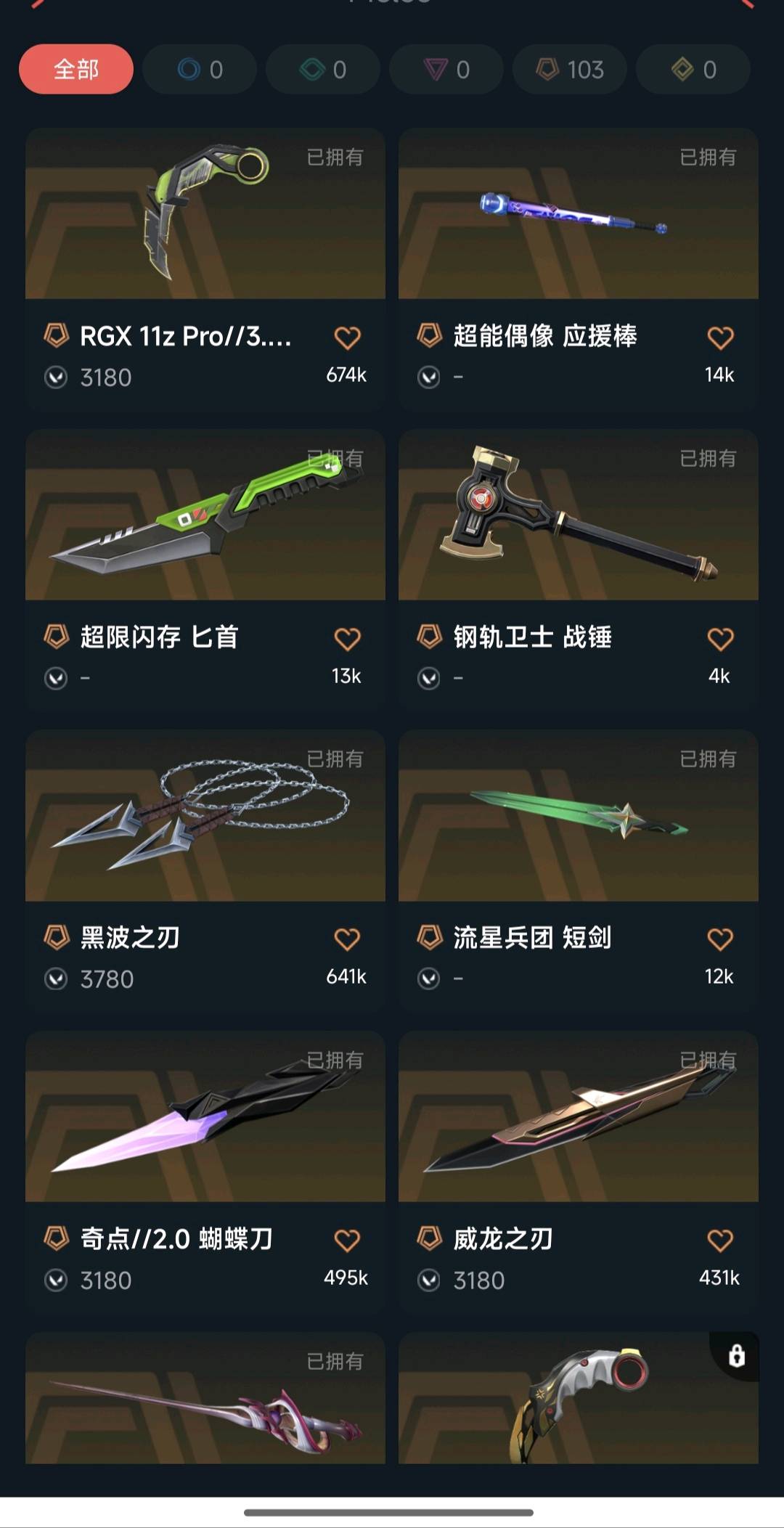 首页 > 租号大厅 > 无畏契约-wegame > wegame/wegame > 奇点2.0全套。黑波之刃,显卡3.0爪刀,威龙之刃。(仅限山东省内,外省容易冻结)