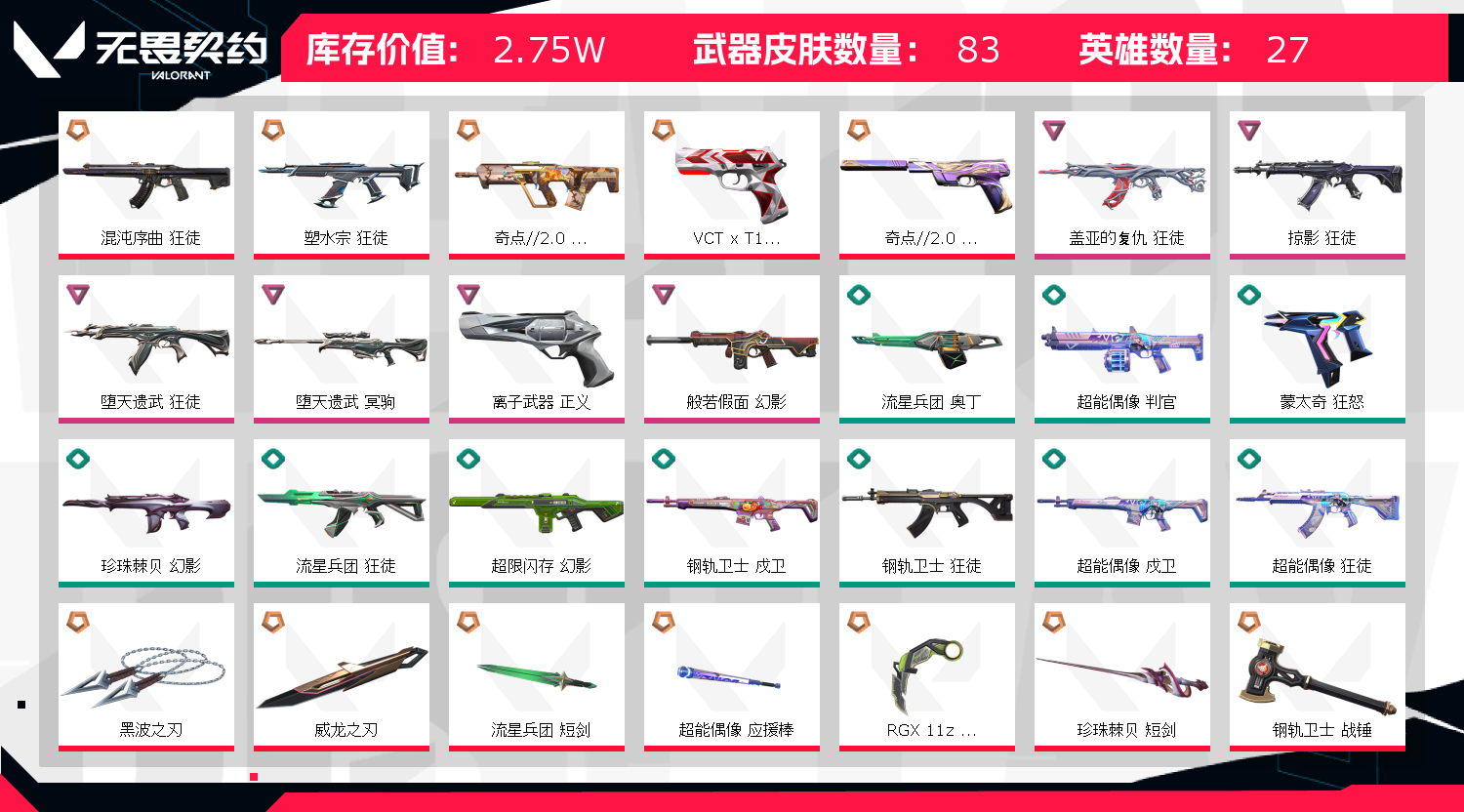• 皮肤资产价值: 27520