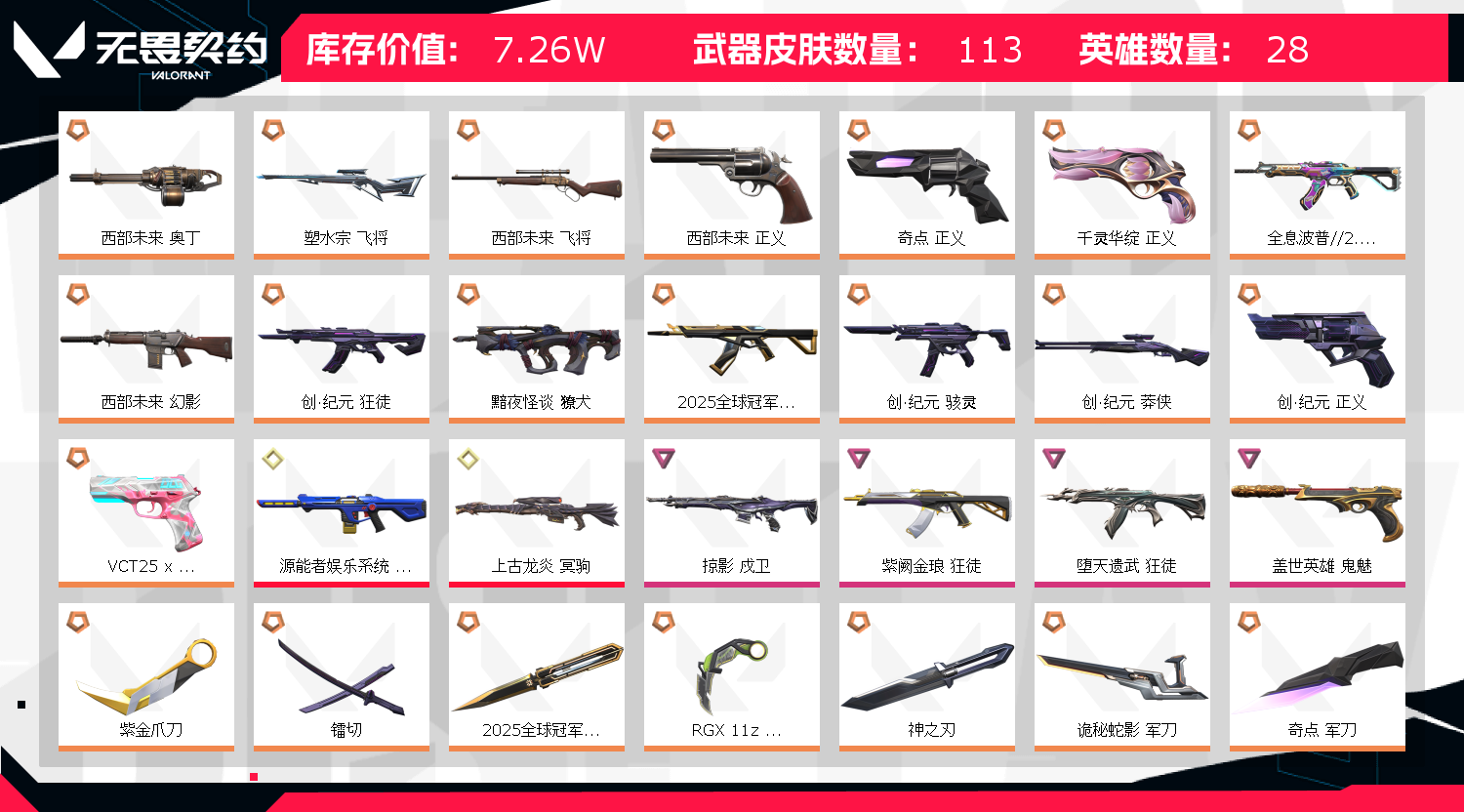 • 武器皮肤数量: 113