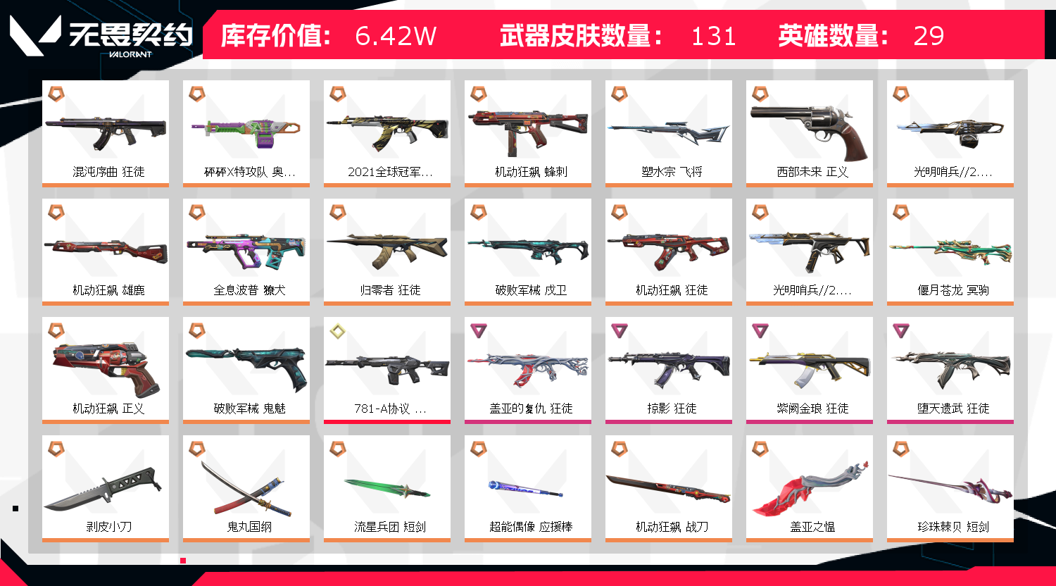 • 武器皮肤数量: 131