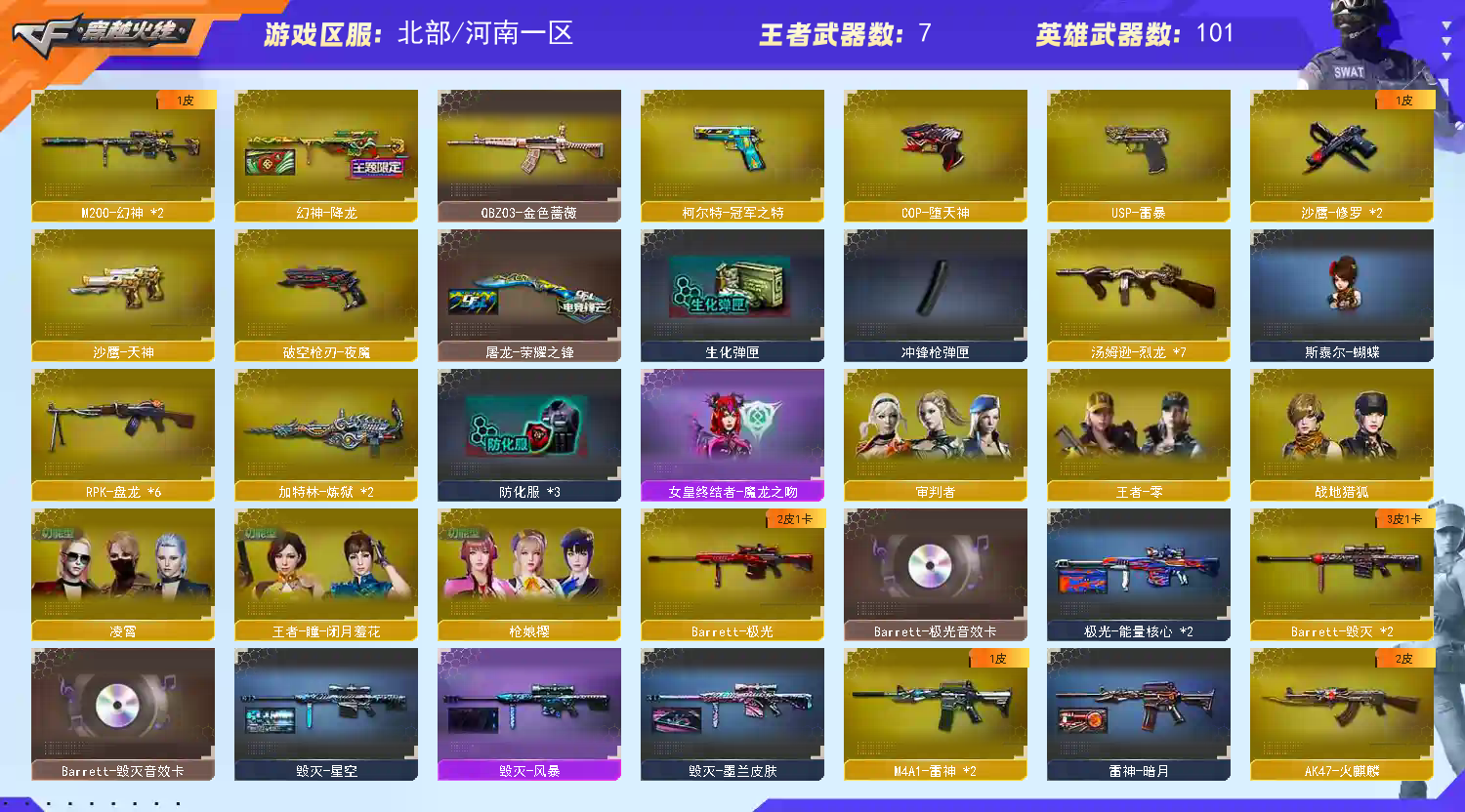 北部双M-200幻神降龙皮USP雷暴整套冠军之特蔷薇生化全满6烈龙6盘龙斯泰尔蝴蝶;USP-雷暴,柯尔特-冠军之特,RPK-盘龙,QBZ03-金色蔷薇,M200-幻神,