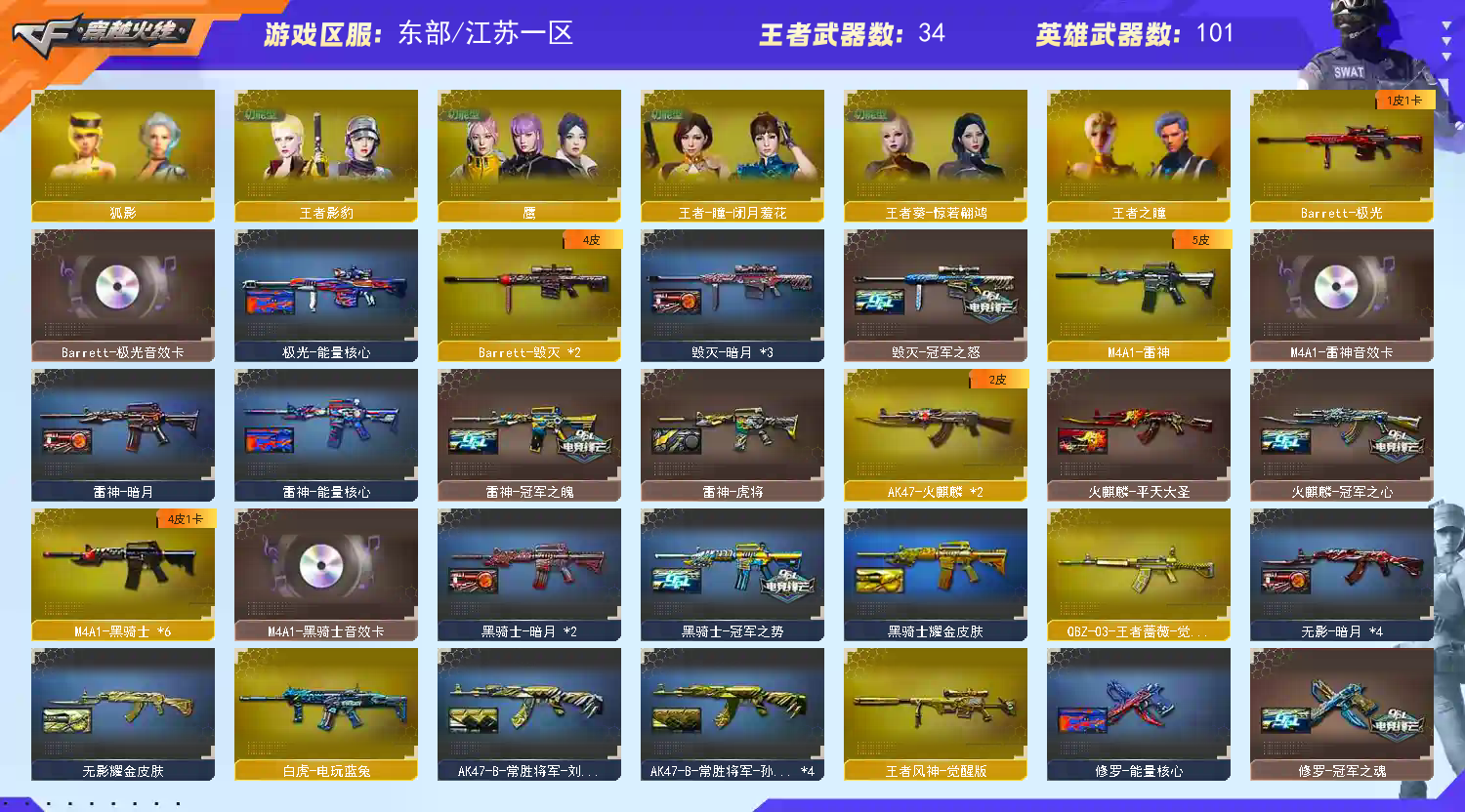 超多小人枪动物园展馆拉满 爆破四把幻神三件套宠儿白鲨QBZ7副手7英雄刀冠特蝴蝶刀 生化6盘小钢3烈斯泰尔枪娘+萌兔斯泰尔大满配 挑战6黑bossbuff基本全满属性全刷超越MAX3+2 全能,可排位 【重要角色】传说艾莉莎/_樱/_炫/鹰/王者葵-惊若翩鸿/王者影豹/王者春/王者-瞳-闭月羞花/王者之瞳/狐影/电竞少女/职业选手/灵狐者-职业经理/荆棘玫瑰 【传说武器】传说圣灵/传说破晓 【英雄武器】_M200-幻神(4)/Barrett-毁灭(2)/Barrett-极光/Barrett-暗月传说/AWM-天龙/AWM-裁决/M4A1-青龙/M4A1-雷神/M4A1-龙血/M4A1-千变/M4A1-黑骑士(6)/黑骑士-海王/M4A1-武圣/王者之魄-觉醒版/王者之势-觉醒版/王者之圣-觉醒版/王者之戮-觉醒版/王者龙血-觉醒版/HK417-朱雀/_Scar Light-白虎/白虎-电玩蓝兔/AK12-天启/AK47-火麒麟(2)/王者炎心-觉醒版/荣耀世冠-火麒麟/AK47-无影/无影-神兵利器/AK47-黑鲨(2)/黑武士-CF网剧冠军/AK-47-猩红传说(3)/AK47-B-身先士卒/AK47-B-常胜将军/AK47-B-战士/AK47-B-战神/QBZ03-金色蔷薇/王者之心-觉醒版/超新星-悦享-觉醒版/王者之影-觉醒版/QBZ-03-王者蔷薇-觉醒版/9A91-烈火(2)/RPK-盘龙(6)/汤姆逊-烈龙(3)/AA-12-雷霆(2)/加特林-炼狱/悦蓝-惊涛骇浪-觉醒版/COP-堕天神/王者之灵-觉醒版/沙鹰-天神(2)/天神-CF网剧冠军/沙鹰-修罗(4)/Glock18-武圣/荣耀世冠-柯尔特/柯尔特-冠军之特/麒麟刺/龙啸/荣耀世冠-龙啸/王者之啸-觉醒版/擎天/擎天-CF网剧冠军/屠龙(3)/雷霆之锋/幻灵之锋/王者之锋-觉醒版/马来剑-夜魔/炽芒蝶刃/高爆手雷-幻灵(2)/高爆手雷-雷霆/高爆手雷-夜魔(3)/烟雾弹-幻灵/烟雾弹-雷霆/烟雾弹-夜魔(3)/闪光弹-幻灵/闪光弹-雷霆/闪光弹-夜魔(3)/闪光弹-雷霆王者-觉醒版/超新星-热带奇洋/王者风神-觉醒版/龙啸-烈火龙威/龙啸-热带奇洋/手雷-热带奇洋 【王者武器】王者之武/王者之城/王者之翼/天启-悦智/炼狱-悦蓝(2)/王者之锋/高爆手雷-雷霆王者(2)/闪光弹-雷霆王者(2)/烟雾弹-雷霆王者 【小人枪】M4A1-雷神-精英刀锋/火麒麟-绝迹/M4A1-刀锋/C.A.T/牛牛-AK47/AK47-斯沃特/天龙-曼陀罗/裁决-雪莉杨/炼狱-迷你小钢/斯泰尔-枪娘暗刃/萌兔-斯泰尔/M37-葵/COP-旗袍/USP-嘉年华柯基/COP-白鲨/夺魂(2)/迷你深渊冰龙/迷你火种/迷你宝贝/魔能飞环-曼陀罗/迷你白狐/Mini沃特X/迷你波特博士/兔宝宝/生化手雷-机甲核心/生化手雷-小钢/高爆手雷-大乔/闪光弹-貂蝉/闪光弹-小乔 【其他重要武器】炫金火麒麟/炫金天龙(2)/炫金毁灭/激光毁灭者III/激光毁灭者I/机甲撕裂者III/AK47-轮回/AK47-娜塔莎/AK47-狂欢-CFS/雷神-赛博朋克/AK-103-红色悦动/M4A1-紫狱/M14EBR-情人节2020/AK12-幽灵/9A-91翡翠(2)/M4A1-樱/9A91-蓝色骑士/9A91-2017万圣节/AK-12-CFS2017纪念版/M4A1-XS-赤龙/M4A1-战龙/M4A1-情人节2019/QBZ03-烛龙/AK47-烛龙/M4A1-十年火线/AK47-破空冰刃/M4A1-破空冰刃/金色小号/M4A1-XS-耀龙/M4A1-电音/AK47-死亡之翼/AK47-B-十周年/M14EBR-天羽/凤凰之魂/黄金AK-47/AK47-青龙/AK47-十年火线/M4A1-青龙./AK47-肯德基/凤凰之魄/M4A1-S-能量核心/AK47-苍龙(2)/M4CQBR-AP-孔明/AK47-雷蛇/M4A1-水枪-机甲核心/AK47-丹龙(2)/AK-12-恶棍/百城AK47(2)/百城M4A1/QBZ03-吕布/Scar-Light-赤血龙魂/AK-103-火线13周年/M4A1-肯德基/QBZ03-锋芒破茧/AK47-祥云苍龙/AK47-枪娘/M4A1枪王排位II/AK103-神秘黑洞/神罚(2)/AWM-恶棍-枪王排位/Barrett-翔龙/AWM-万圣节2019/M200-涂鸦(2)/FN弩炮-CFS2017纪念版/M200-赤血龙魂/98K-烛龙/雷蛇AWM(2)/AWM-T/暗金M200/凤凰之力(2)/破天九龙/AWM-蓝水晶/AWM-涂鸦/M200-情人节2019/M200-万圣节/M200-圣诞/AWM-Pink/蓝色魅影/AWM-A(2)/AWM-2018圣诞/AWM-十周年/M200-万圣节2018/M200-庆典-CFS 2021/M200-落樱/M200-萌杀/M200-大黄蜂(2)/Barrett-苍龙/M200-枪王排位/M82A1-夏日/百城AWM/AWM-7周年/AWM-恶棍/破天狂龙/AWM-万圣节刀锋/Barrett-炎龙/AWM-A-圣诞2021/Barrett-黑大圣/Barrett-孔明/Barrett-怒火大圣/98K-火线13周年/AWM-A枪王排位II/M200-青帝/M200-神秘黑洞/末日裁决者/MG3-翔龙/KAC-耀龙/KAC-赤烛/KAC-情人节2021/EVO III-赤血龙魂/EVO3A1-火线13周年/斯泰尔-CFS2017纪念版/斯泰尔-巧克力/雷蛇冲锋枪/EVOIII-萌杀/MK5-枪王排位/EVOⅢ-黑金传说/征服者-地狱之火 [Lv Max]/神圣爆裂者/神圣爆裂者-末日(2)/Spas-12-黑金/Spas-12-幻能朋克(2)/AA-12-圣龙/阐释者III/Anaconda-炽焰核心/新USP-枪王排位奖励(2)/沙鹰-雷蛇(2)/COP 357--绚樱(2)/Anaconda-雷电核心/愤怒公牛左轮-枪王排位(2)/凤凰之火/Cop357-赤龙(2)/沙鹰-青龙/新USP-怒火大圣(2)/COP357-绚樱-圣诞/MAC-10-幻能朋克/COP357-朋克/沙鹰-枪王排位(2)/幻影Anaconda-枪王排位(2)/COP357-神秘黑洞/幻影沙鹰-枪王排位/Anaconda-情人节2021/COP-金蝉子-枪王排位/USP-黑大圣/柯尔特-百城/Anaconda-万圣节2019/COP-青帝/金刚伞-电玩红兔/斩神刀-御龙/啸天/丛林匕首-枪王排位/收割者-枪王排位/军用铁锹-飞龙在天/军用铁锹-赤龙/军用手斧-能量核心/黄金猫猫手套-白鲨/幻影双斧-枪王排位(2)/幻影扳手-枪王排位/蝴蝶刀-枪王排位/丛林匕首-卧龙/虹光丛林匕首-枪王排位/斩魔刀-怒火大圣/闪光弹-枪王排位(7)/红色诅咒娃娃手雷/胜利奖杯烟雾弹-枪王排位(3)/胜利奖杯手雷-枪王排位(3)/胜利奖杯闪光弹-枪王排位(4)/手雷-能量核心 【重要武器皮肤】M200-幻神-荣耀世冠白鲨/幻神-宠儿-2021MVP/毁灭-冠军之怒/毁灭-暗月/极光-能量核心/AWM-天龙-传奇70KG/天龙-能量核心/火麒麟-AG/火麒麟-平天大圣/火麒麟-冠军之心/无影-暗月/无影耀金皮肤/AK47-B-常胜将军-刘备/AK47-B-常胜将军-孙权/M4A1-千变-孔明皮肤/雷神-冠军之魄/雷