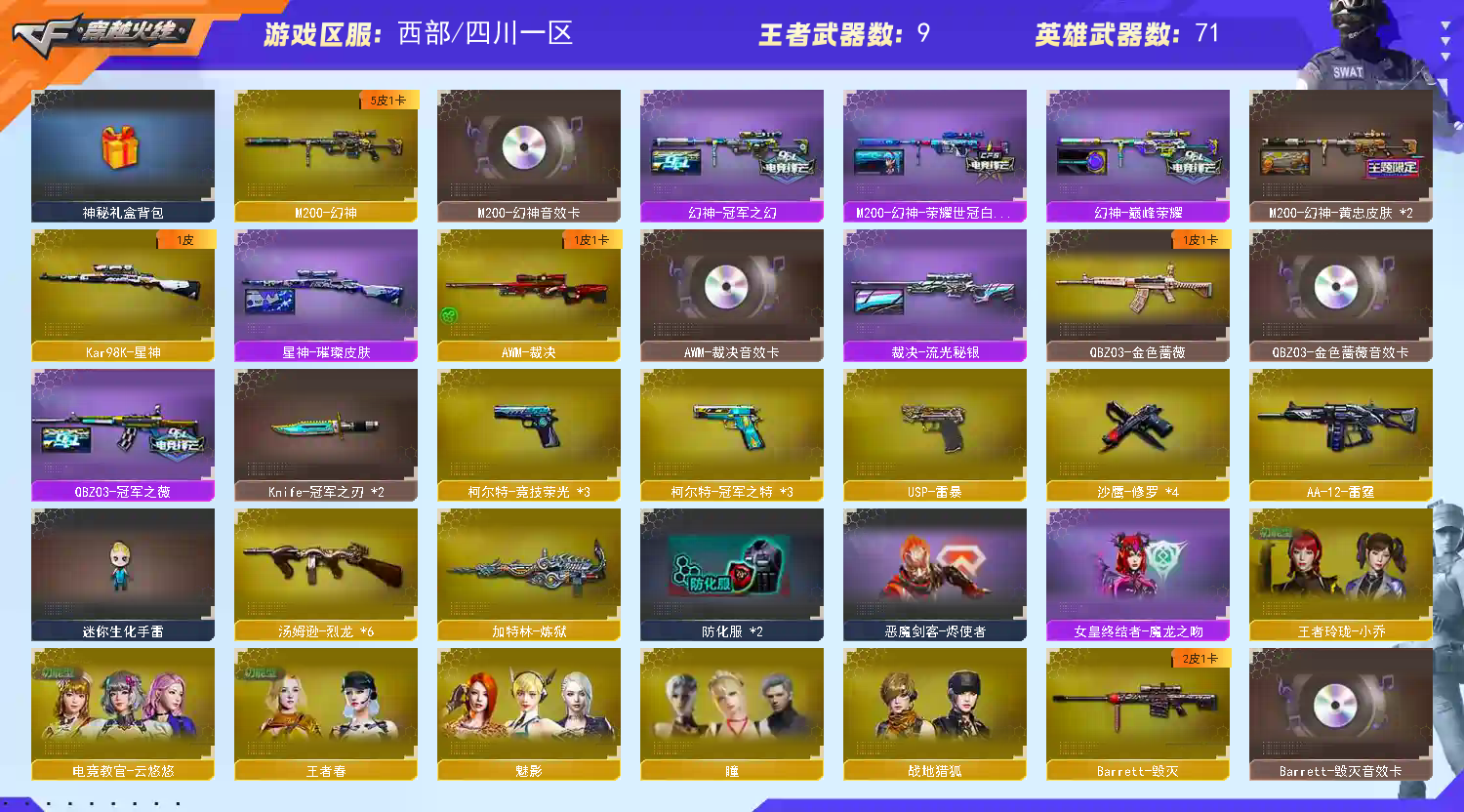 幻神5皮+卡✨星神璀璨✨裁决三件套✨QBZ三件套✨竞技荣光套✨3冠军柯尔特✨白鲨拳套✨冠军小刀