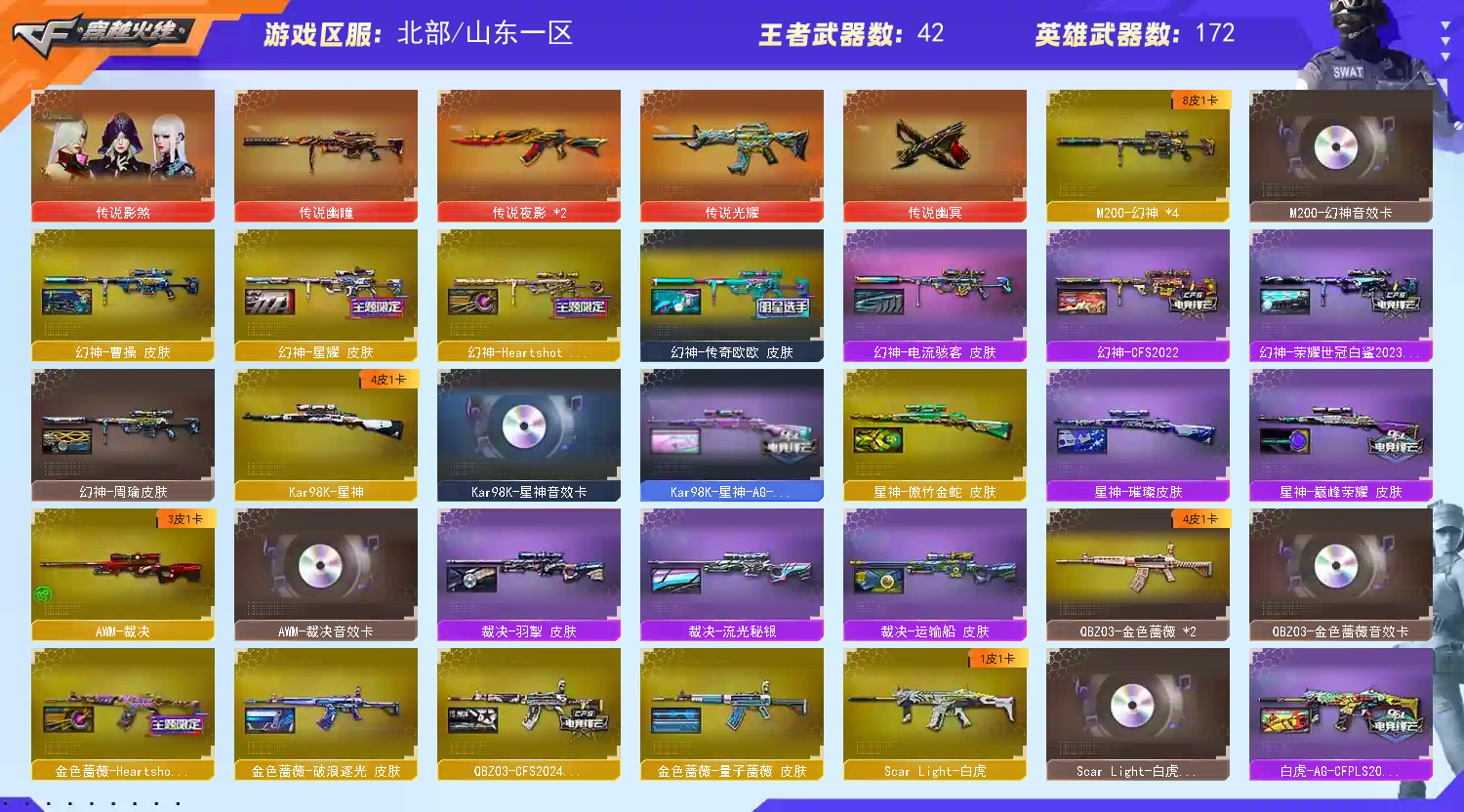 角色名为:记忆恍若凌迟 !!!!!!!!!!!!!!!!!!!! 【禁止使用鼠标宏,DMA,外挂进行游戏,造成损失后果自负!!!】 【订单时间快到了禁止再开排位赛,导致账号禁赛的租客将被永久拉黑!】 【订单时间快到了禁止再开排位赛,导致账号禁赛的租客将被永久拉黑!】 【订单时间快到了禁止再开排位赛,导致账号禁赛的租客将被永久拉黑!】 !!!!!!!!!!!!!!!!!!!! ① 北部 爆破生化极品号: ✅爆破: ✨5传说武器 传说幽瞳 | 传说幽冥 | 传说光耀 | 传说夜影 | 传说夜影 ✨英雄级角色 4防传说影煞 | 4防云悠悠 | 4防王者樱 ✨4幻神8皮带卡 | 幻神-荣耀世冠白鲨2023 | 幻神-传奇欧欧 | 幻神-HeartShot女团 | 幻神-曹操 | 幻神-星耀 | 幻神-CFS2022 | 幻神-电流骇客 | 幻神-周瑜 | 幻神音效卡 | 王者幻神 | 王者风神 | M200-竞技荣光*3 ✨Kar98k-星神4皮带卡 | 星神-巅峰荣耀 | 星神-AG | 星神-傲竹金蛇 | 星神-璀璨 | 星神-音效卡 | 星神-炽天使*2 ✨裁决 | 裁决-流光秘银 | 裁决音效卡 ✨毁灭 | 毁灭-星空 | 毁灭-耀金 | 毁灭音效卡 | 王者之怒 ✨G36C-幻影*2 | 幻影-破浪逐光 | QBZ191银翼*2 ✨QBZ03金色蔷薇 | 金色蔷薇-CFS2024 | 金色蔷薇-HeartShot女团 | 金色蔷薇-破浪逐光 | 金色蔷薇-量子蔷薇 | 金色蔷薇音效卡 ✨白虎 | 白虎-AG | 白虎音效卡 | ScarLight-马枪 ✨雷神 | 雷神-白鲨 | 雷神-冠军之魄 | 雷神音效卡 ✨天花板副武器: 1)COP*3 = COP雷霆王者*2 + COP堕天神 2)柯尔特*5 = 柯尔特-荣耀世冠白鲨2023 + 柯尔特-无冕之王 + 柯尔特-竞技荣光*3 3)USP*1 = USP-雷暴 ✨冠军之刃 ✨喜狮迎春手环 ✅生化: ✨强力生化角色--4防隼 ✨生化冲锋枪--死亡之眼 | 烈龙*6 ✨生化步枪--王者玄武 ✨生化机枪-- 炼狱-秦师*2 | 炼狱*6 | 盘龙*2 ✨生化近战--炽芒蝶刃*2 | 炽芒蝶刃-荣耀世冠白鲨2023 | 炽芒蝶刃-破浪逐光 ✨生化道具--迷你生化手雷 | 满弹匣 生化爆破体验拉满!!!! ② 有什么问题请填写真实理由【不要无故撤单】否则拉黑,本店将拉黑【恶意撤单/排位离线】的不文明租客;USP-雷暴,柯尔特-无冕之王,柯尔特-荣耀世冠白鲨2023,传说幽冥,炽芒蝶刃,Knife-冠军之刃,传说影煞,