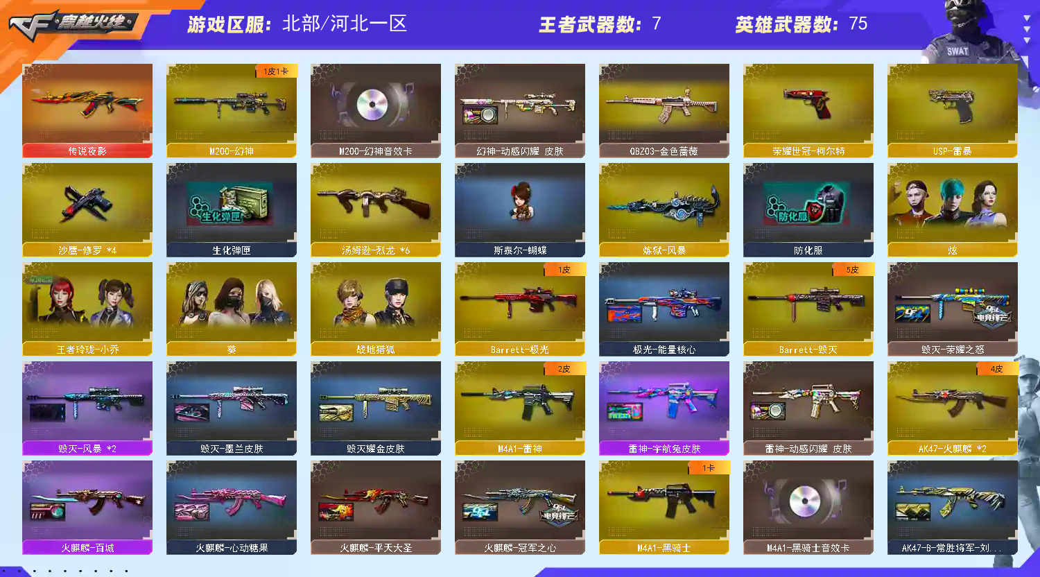 首页 > 租号大厅 > 穿越火线 > 网通区/河北一区 > 幻神音效卡+动感光耀+USP雷暴.柯尔特✨传说夜影✨六烈蝴蝶✨四防角色