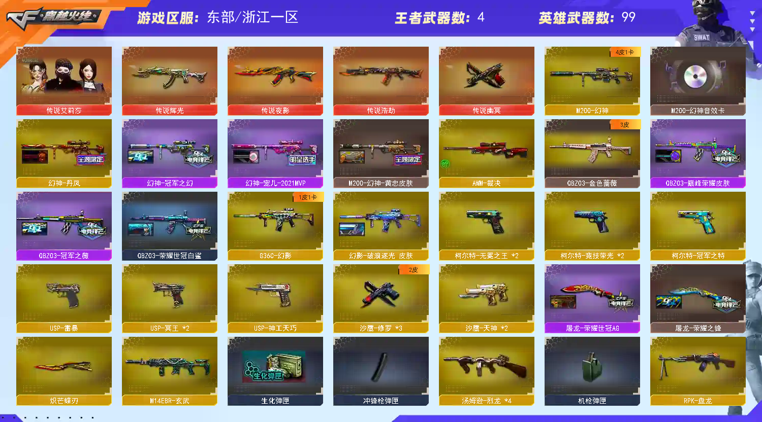 5传说✅传说浩劫✅艾莉莎✅G36幻影三件套✅幻神三件套✅usp冥王✅星神三件套✅夜影辉光幽冥