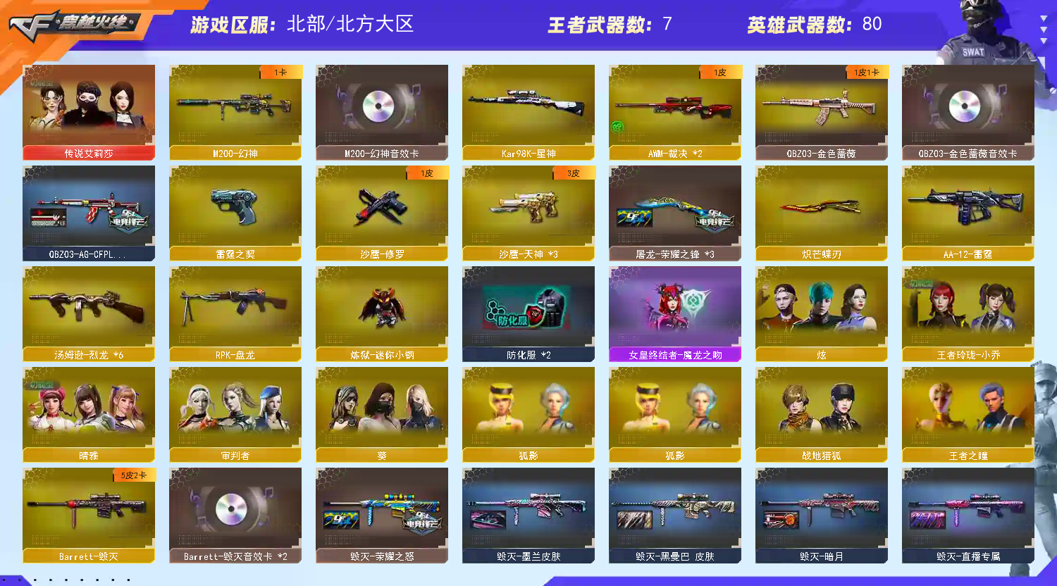 北部传说艾丽莎M-幻神带音效卡晴雅⚡蝴蝶刀USP柯基98K星神QBZ冠军皮带音效卡⚡6烈龙死眼;炽芒蝶刃,晴雅,传说艾莉莎,RPK-盘龙,QBZ03-金色蔷薇,M200-幻神,Kar98K-星神,